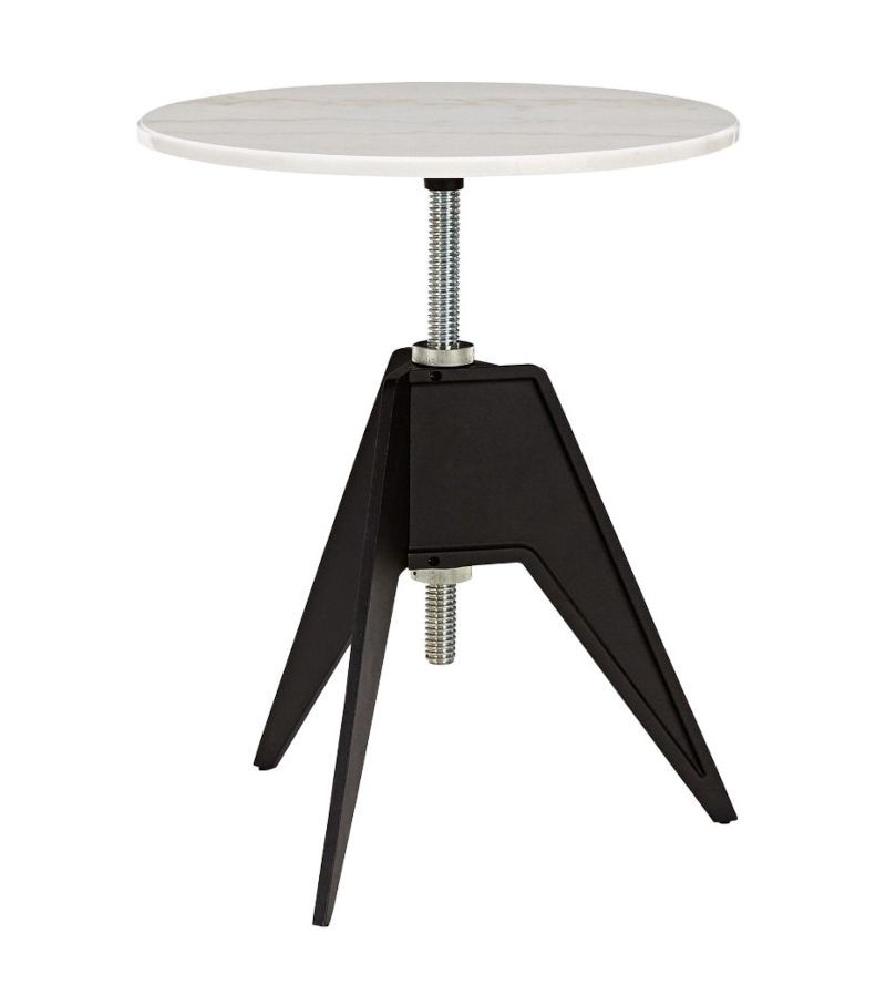 Столик Screw Cafe Table отличается простым и лаконичным дизайном, вдохновлённым материалами и технологиями промышленной революции. Вращающаяся столешница на стальном стержне с резьбой позволяет регулировать высоту. Столик прочный, долговечный, элегантный и идеально подходит для использования как в помещении, так и на улице. Круглая каменная столешница диаметром 600 мм изготовлена ​​из цветного мрамора, добываемого в китайских провинциях Шаньдун и Фуцзянь. Рисунок натурального мрамора обусловлен изменениями в земной коре, вызванными извержением лавы, которые формировались на протяжении миллионов лет.