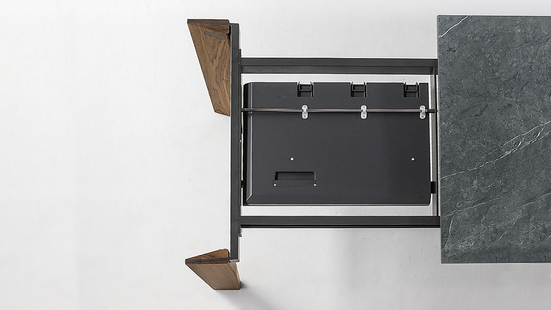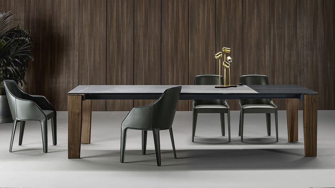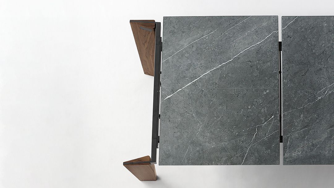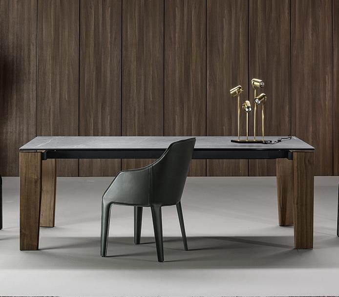 Стол Truly отличается простыми линиями и подлинной архитектурой в своей форме, как отмечает сам дизайнер. Верный своему названию, Truly демонстрирует свою истинную сущность, подчеркивая линейность дизайна. Ножки из профилированного массива дерева вписываются в металлический каркас столешницы с помощью шпунтовых соединений, создавая воздушный и в то же время прочный внешний вид. Столешница удлиняется, а ножки выполнены из дерева в отличие от материалов, из которых изготовлена столешница, которая может быть изготовлена из стекла или керамики.