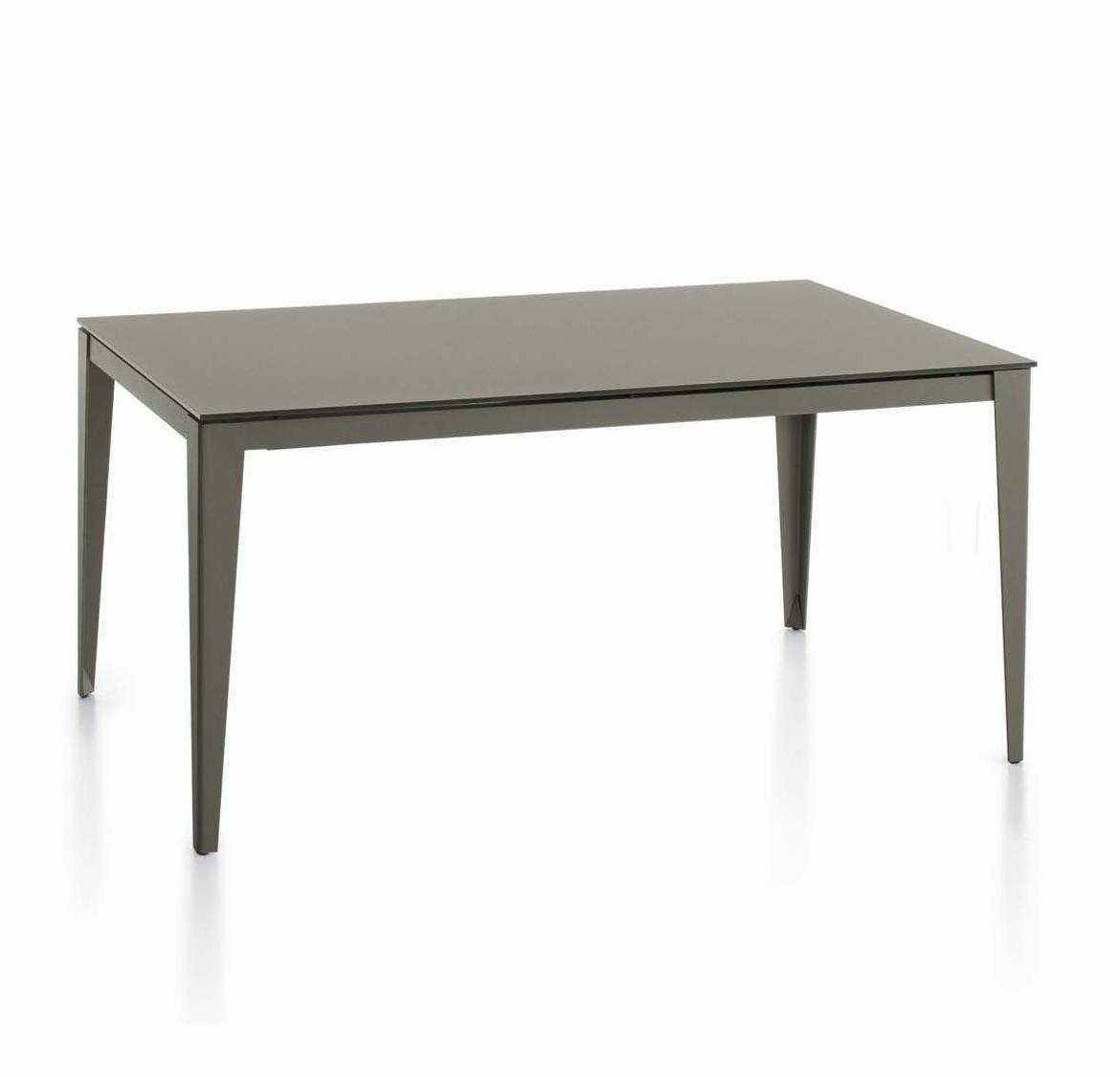 Раздвижной стол с лакированной стальной конструкцией, столешницей из меламина, стекл,а устойчивого к царапинам стекла, суперкерамики и супермрамора.