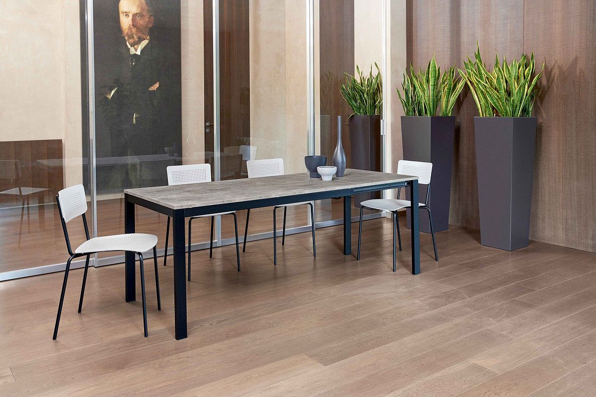 Раздвижной стол с лакированной или хромированной стальной конструкцией и столешницей из меламина, текстурированного меламина, Unicolor, устойчивого к царапинам, стекла, стекла, устойчивого к царапинам, и SuperCeramic.