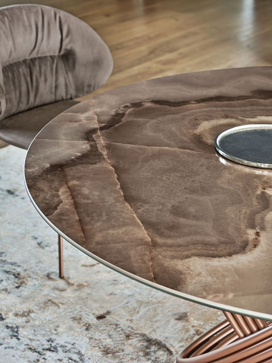 Fusion представляет собой стол, состоящий из основания из лакированной стали, соединенного с верхом двумя кольцами. Столешница доступна из стекла, дерева, мрамора и SuperMarmo. Элегантный и изысканный стол, идеально подходящий для вашего дома.