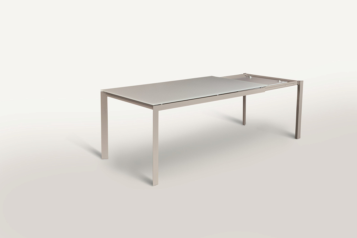 Столешницу можно выбрать в разнообразной отделке; меламин, Unicolor, SuperCeramic, SuperMarble, глянцевое лакированное стекло и бархатное стекло, устойчивое к царапинам, хотя не все столешницы доступны для всех размеров. Два покрытия «Super» устойчивы к нагреву, царапинам, химикатам и огню, что делает их чрезвычайно прочными. Все расширения выполнены из меламина. Прочные металлические ножки доступны в различных цветах.