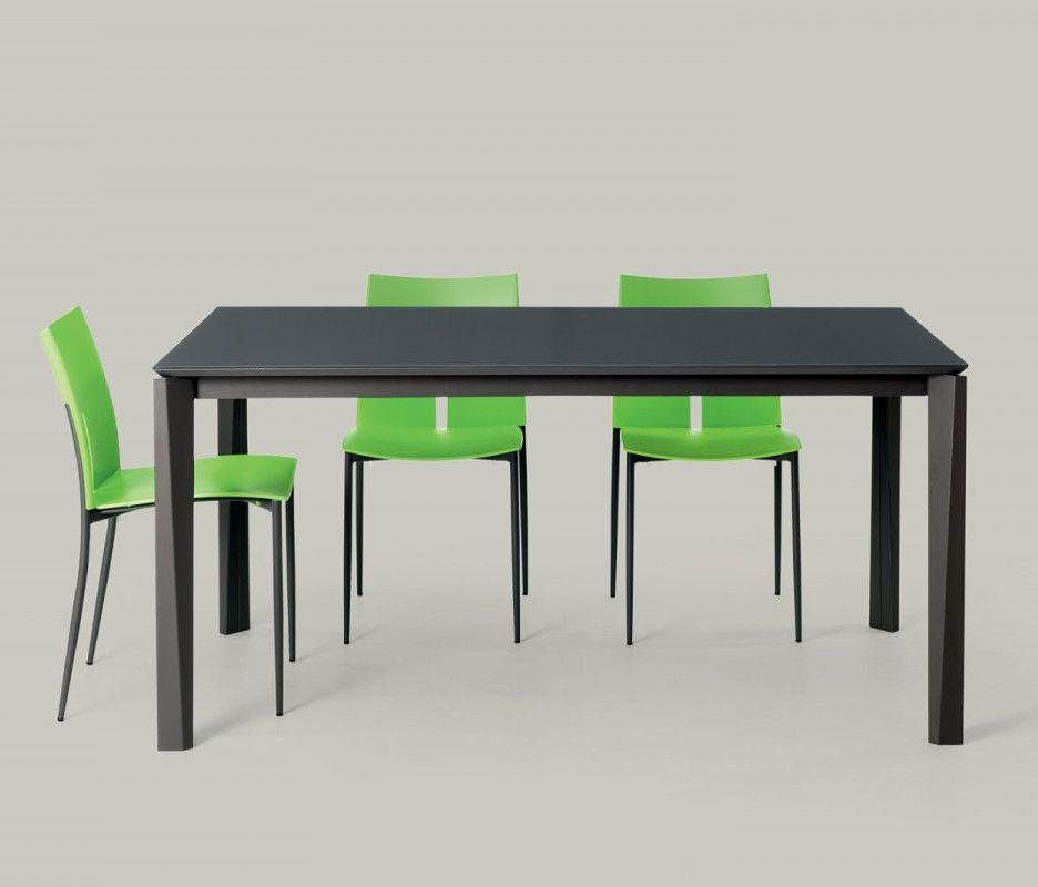 Раздвижной стол с конструкцией из лакированной стали и столешницей из меламина, текстурированного меламина, суперкерамики, стекла, стекла с защитой от царапин и супермрамора.