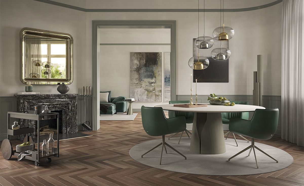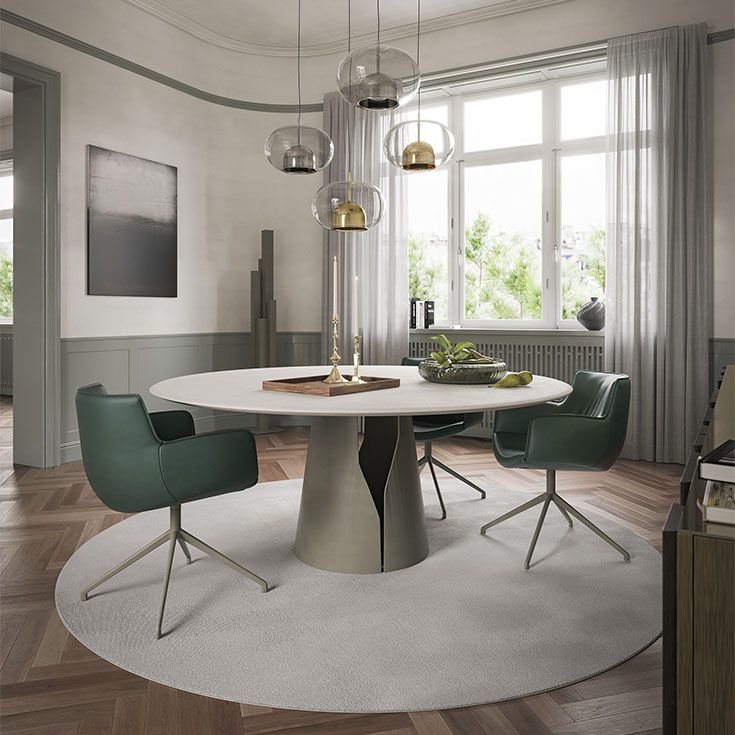 Линия современных столов Giano придает столовой изысканный и неповторимый стиль. Строгий стилистический тон делает этот дизайнерский стол предметом обстановки неподвластным времени . Круглое стальное основание имеет точную прорезь, позволяющую заглянуть внутрь. Giano можно подобрать в разных формах, размерах и материалах: в стандартной версии - это современный круглый или овальный стол с деревянной или мраморной столешницей. Giano Crystalart , напротив, прямоугольный стеклянный стол, также фигурной формы, с привлекательной декоративной художественной печатью. Альтернативная модель Giano Keramik отличается керамической столешницей, доступной в многочисленных очаровательных оттенках, которые удовлетворят самые разные вкусы. Керамические столы также могут быть дополнительно украшены толстым краем, почищенным вручную, в отделке Brushed. Так оживают модель Giano Keramik Premium и круглая версия Giano Keramik Premium Round. Дополняет линию современный круглый или овальный стол Giano Argileсо столешницей в глиняной облицовке, выполненной в различных землистых и естественных оттенках. Его органический и натуральный внешний вид подчеркивает путь бренда к экологичному дизайну, который создается из натуральных материалов с использованием методов с низким энергопотреблением. Для обеспечения большего комфорта имеется вращающийся подносLazy Susan, который позволяет с элегантностью и практичностью удивлять и баловать ваших гостей.