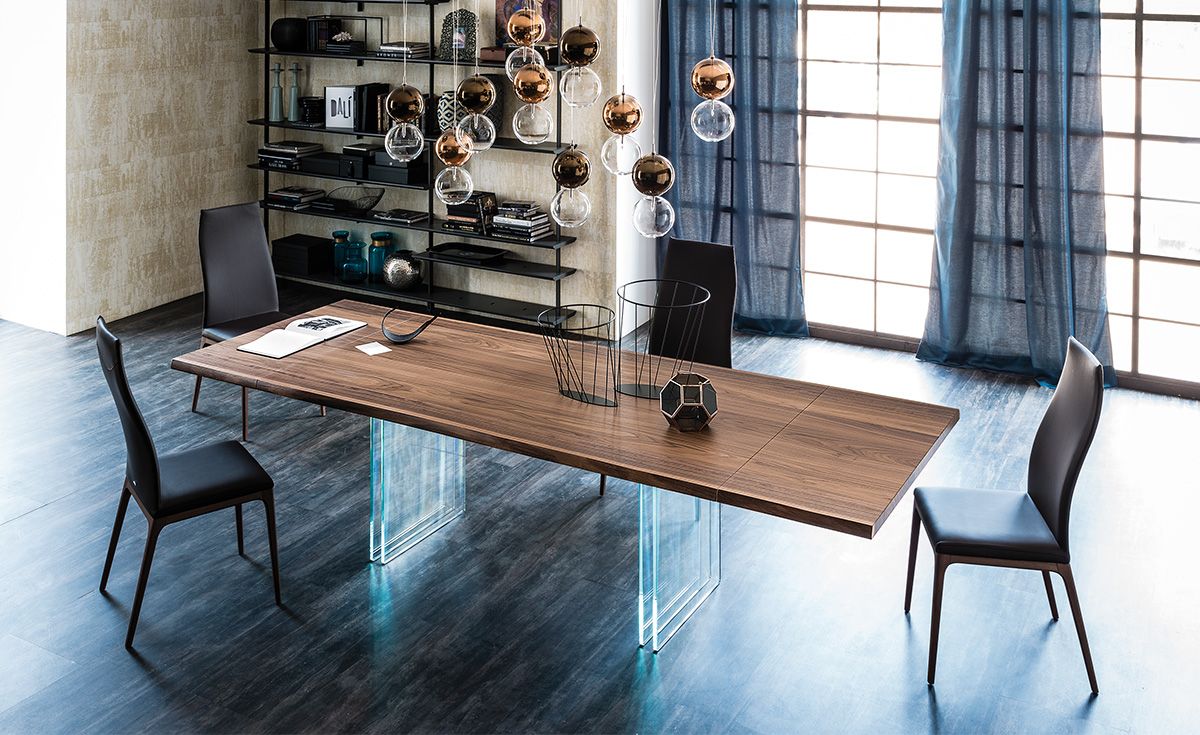 Стол из дерева и стекла Ikon - это изысканный и необычный предмет мебели для современной столовой, который противоречит традиционным канонам. Основание выполнено из стекла, с добавлением горизонтальной балки из графита. Основание, хрупкое только на вид, поддерживает элегантную столешницу из массивного дерева с неровными краями, с приятным тактильным эффектом. Также имеется версия Ikon Drive, деревянный раздвижной стол с простым и интуитивно понятным механизмом открытия и отличительной элегантностью, которая характеризует коллекцию современных столов Cattelan Italia.