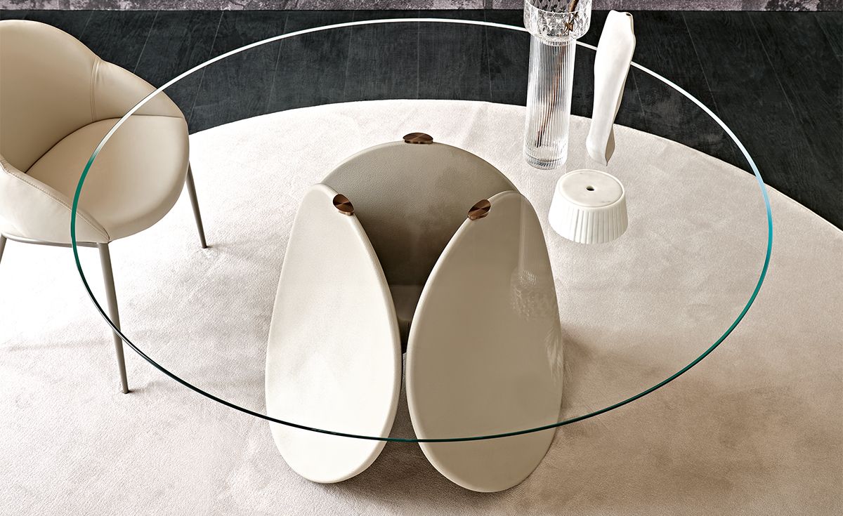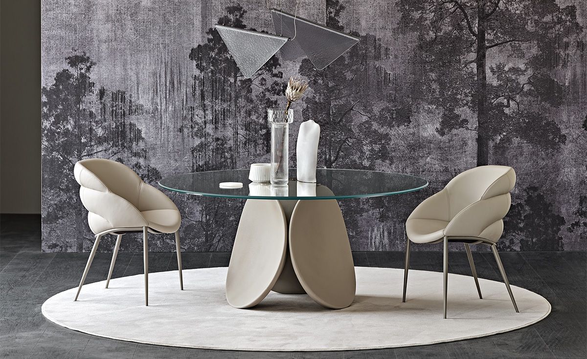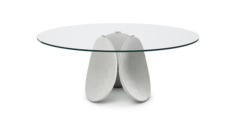 Проект стола - скульптура Maxim, которая возникает из неразрывной связи между ее формой, состоящей из трех лепестков, и материалом, из которого он сделан. Подобно скульптуре, возникающей из материала в руках мастера, точно так же, наблюдая за этим дизайнерским круглым столом можно почувствовать усилия и время, затраченные мастером на его создание. Maxim отвечает требованиям более экологически чистого дизайна. Благодаря ручной обработке и технике холодного формования, которая не включает использование энергетических ресурсов. Промышленно развитые процессы поддерживают только высокую ремесленную составляющую этапов заливки жидкого цемента и отделки, выполненных вручную. Основа этого современного стола фактически отделана глиной с землистыми и естественными оттенками. Maxim выполнен в двух вариантах: круглый стол со стеклянной прозрачной столешницей, что позволяет оценить скульптурную основу в целом, и модель Maxim Argile полностью обработанная глиной, что придает ей более органичный вид. “Когда достаточно только одного материала, без каких-либо добавок или дополнений, получается чистый и ровный предмет, который уже и становится готовым продуктом”, - говорят дизайнеры Пио и Тито Тосо.