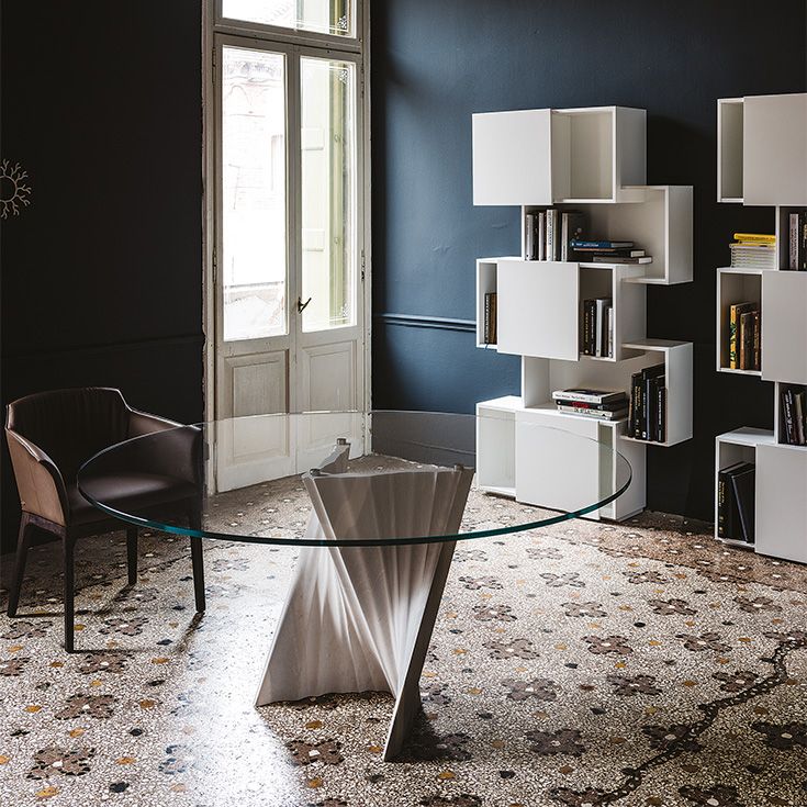 Дизайнерский стол из стекла Plisset завораживает благодаря сочетанию драгоценного мрамора Palissandro с прозрачностью драгоценного стекла. Извилистая линия основания, похожая на скульптурную драпировку в греческих традициях, придает уникальную гармонию и создает завораживающую игру теней от света, проходящего через стекло. Plisset - это современный стол, история создания которого пришла из традиционной обработки мрамора первых продуктов Cattelan Italia. В дизайнерской гостиной он способен воссоединить современность и классику с мастерством.
