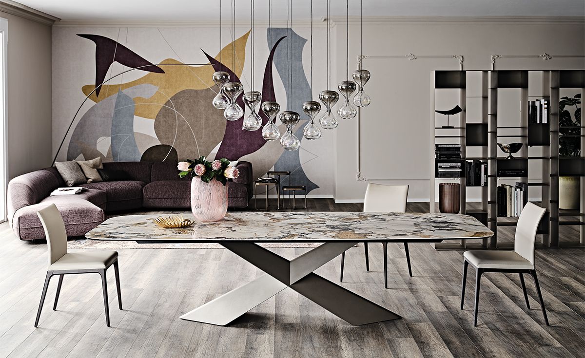 Tyron - это линия дизайнерских столов под брэндом Паоло Каттелана, который формирует новое видение современной жилой гостиной. Это игра стиля между символической базой и выбранной индивидуально столешницей, которая делает каждую из версий выдающимся персонажем современного дизайна. Wood, Keramik и Keramik Premium - это предложения для современной гостиной, которые отдают дань уважения самым ценным материалам итальянской мануфактуры. Кроме того, топ Masterwood украшают ценные материалы - непревзойденная обработка дерева на рынке, которая благодаря эксклюзивной технологии производства делает каждый стол уникальным! Для тех, кто любит праздничность, даже при наличии небольшого пространства, доступны две раздвижные версии Drive: одна с изысканной стеклянной столешницей декоративной художественной печатью Crystalart в различных цветовых вариантах, и другая - из керамики Marmi, в многочисленных эксклюзивных нюансах, которые делают каждую среду уникальной. Завершает коллекцию модель Signature, украшенная вручную коллективом художников-ремесленников. Каждый стол на самом деле уникален, и не повторяется, являясь шедевром искусства.