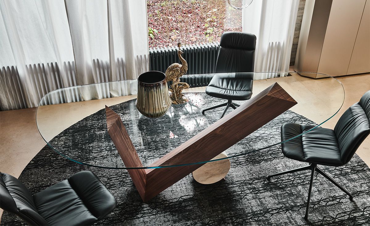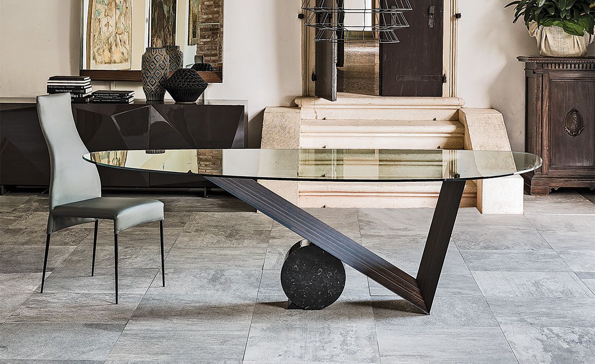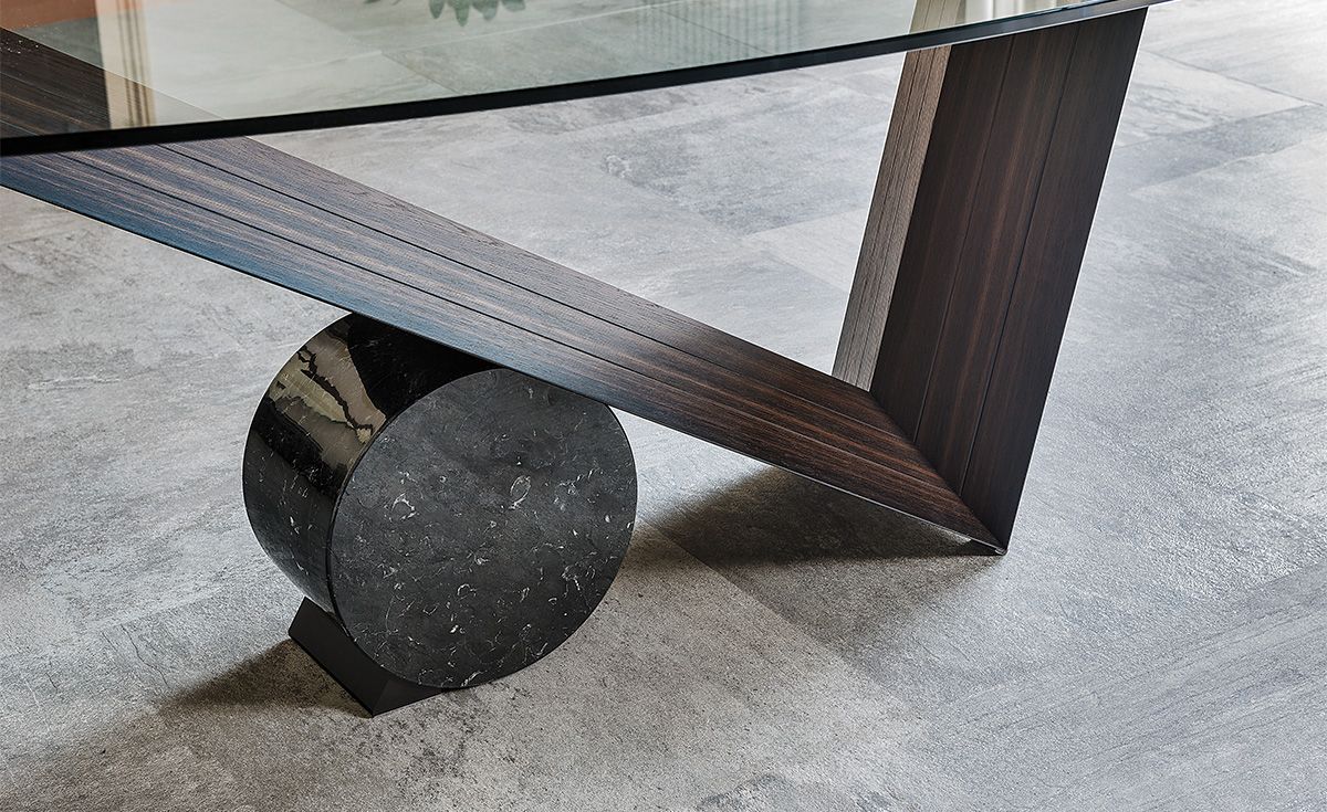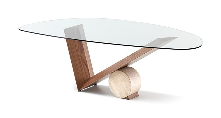 Эмануэле Ценере рисует стол Valentino впервые в 1991 г. С тех пор линия продуктов расширилась, сначала появился стол Valentinox и позже 2 версии одноименной консоли. Скульптурная база - это баланс объемов, которые, кажется, поддерживают друг друга, в то время как стеклянная поверхность пропускает свет и подчеркивает сочетание различных материалов. В первоначальном проекте этого современного обеденного стола, а затем деревянной консоли Valentino лежит основной объем V - образной формы, выполненный из ценных пород дерева, который опирается на мраморный цилиндр. В консоли Valentinox и в одноименном стеклянном столе основной объем сделан из полированной нержавеющей стали.
