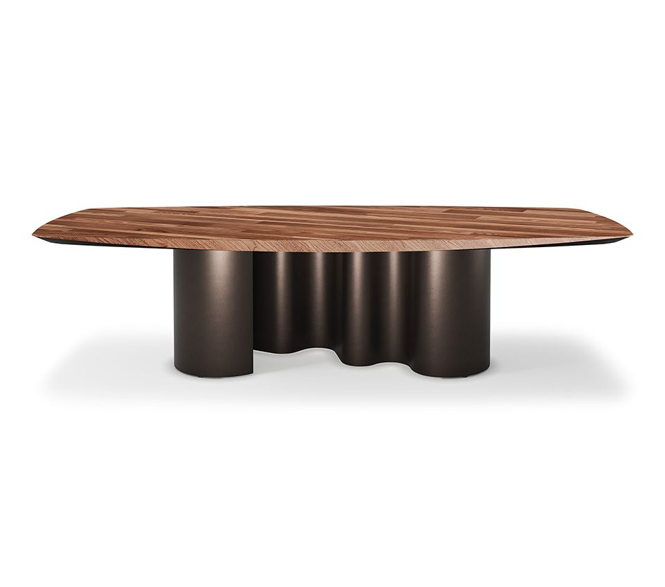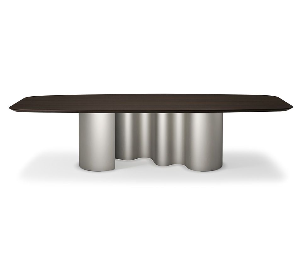 Его извилистое основание было искусно спроектировано так, чтобы менять свой вид в зависимости от угла обзора. Полные и пустые цилиндры меняются местами в зависимости от игры света и тени при взгляде на этот дизайнерский стол с разных ракурсов. Это делает модели Papel одновременно изящными и внушительными, особенно если вы выберете отделку из серии Brushed: вручную отшлифованную искусными мастерами. Изогнутое металлическое основание изготовлено из цельного куска, что добавляет изысканности этому современному обеденному столу .