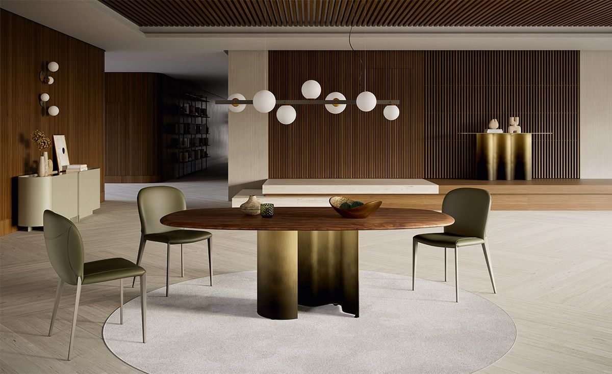 Его извилистое основание было искусно спроектировано так, чтобы менять свой вид в зависимости от угла обзора. Полные и пустые цилиндры меняются местами в зависимости от игры света и тени при взгляде на этот дизайнерский стол с разных ракурсов. Это делает модели Papel одновременно изящными и внушительными, особенно если вы выберете отделку из серии Brushed: вручную отшлифованную искусными мастерами. Изогнутое металлическое основание изготовлено из цельного куска, что добавляет изысканности этому современному обеденному столу .