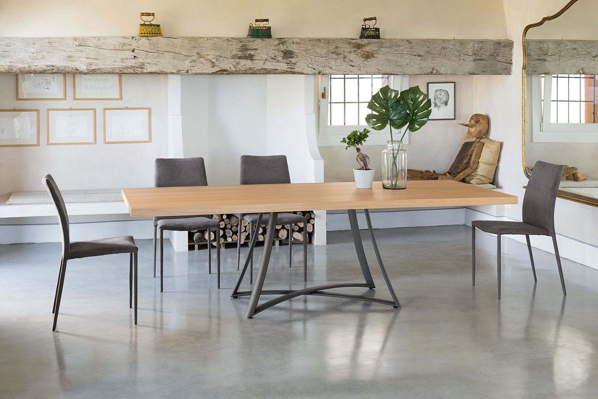 Стол нераскладной со структурой из лакированной стали, столешница из шпона, шпона с краями из массива, стекла или стекла, устойчивого к царапинам.