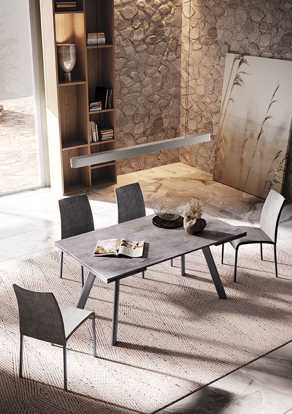 Стол прямоугольный нераскладной со структурой из лакированной стали, СуперКерамики столешница из Меламина, СуперКерамики и СуперМрамора.
