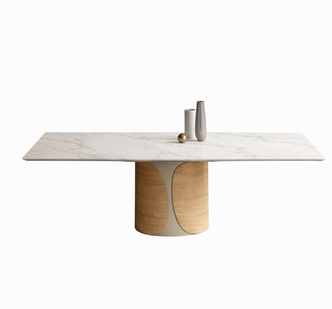Talos — это стол, который заявляет о себе с прочной элегантностью и архитектурным присутствием. Отличительная особенность — монолитное эллиптическое основание, состоящее из двух симметричных оболочек, обнимающих центральную часть. В металлическом варианте основание выделяется изысканными цветовыми сочетаниями, создающими визуальные вибрации или утончённые эффекты тон в тон. В сочетании металла и дерева тёплая фактура древесины сочетается с блеском металлических покрытий, создавая гармоничный баланс между материальностью и строгостью. В любом исполнении Talos сохраняет свою сценографическую идентичность и главенствующую роль, определяя пространство с харизмой.