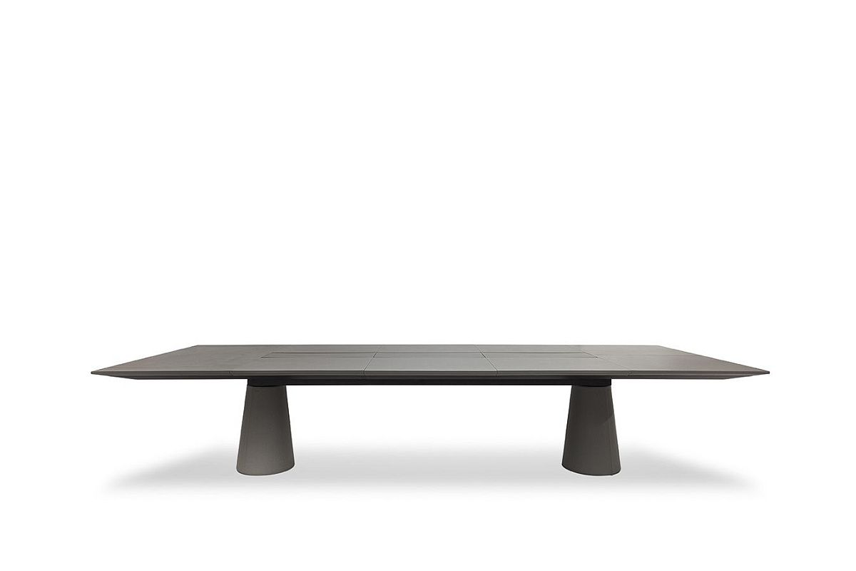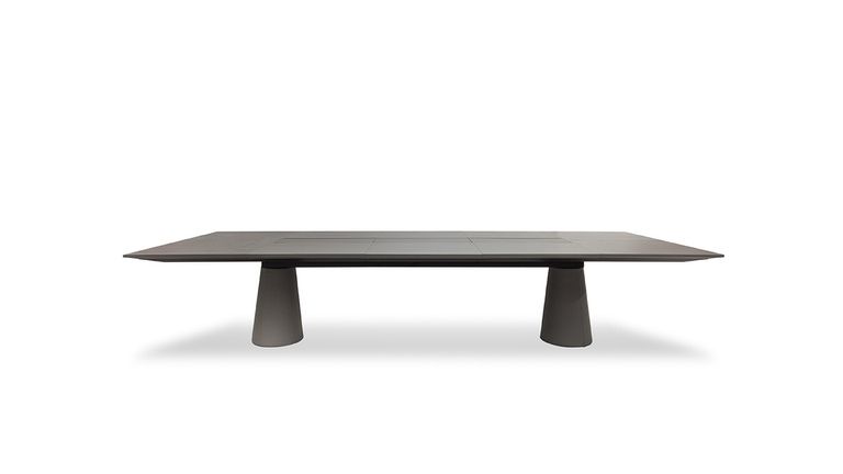 Столешница стола для совещаний Mesa Due состоит из нескольких панелей и может быть удлинена до нужной длины. Количество опор варьируется в зависимости от размеров. Все столы могут быть оснащены системами прокладки кабелей и центральными панелями с дверцами для легкого доступа к электрическим компонентам. Столешница с двойными панелями из МДФ полностью обтянута кожей Pelle Frau®. Каркас конструкции выполнен из окрашенного в черный цвет железа. Стальная опорная колонна, стабилизированная системой противовесов, обтянута кожей Pelle Frau® с прострочкой в ​​тон или кожей Cuoio Saddle Extra с контрастной прострочкой. Зону президента можно узнать по кожаной обивке прямоугольной столешницы с инкрустацией на короткой стороне панели, которая более насыщенная и выразительная как по тону, так и по обработке. Коллекция Mesa Due также включает круглый стол для совещаний Mesa Due. Два диаметра стола — 120 и 150 см — делают его идеальным вариантом для небольших совещаний. Стальное основание, обитое кожей Pelle Frau® или кожей Cuoio Saddle Extra, теперь может быть оснащено скрытой кабельной колонной. Столешница из ясеня доступна в вариантах с отделкой «мокко» или «венге». Ножка также доступна с обивкой из кожи Pelle Frau®.