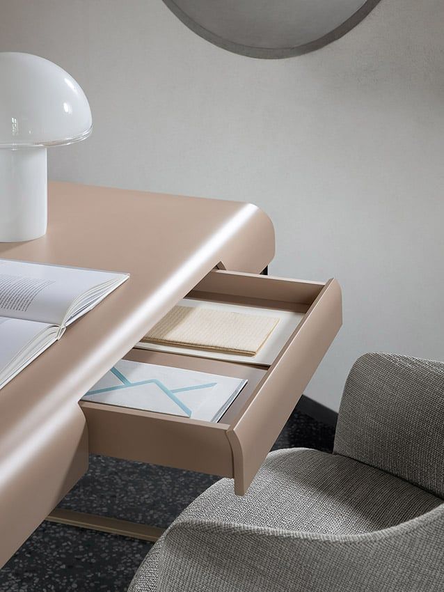Следуя стилистическим кодам бренда, 967Arch предлагает письменный стол с округлыми линиями, способный вписаться в обстановку, придав ей индивидуальность и легкость.
