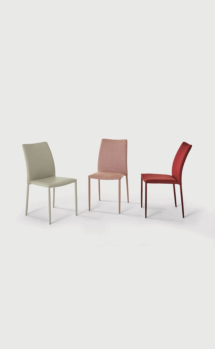 Стул Amy с классическими и чистыми линиями, адаптируемый к любой обстановке, полностью покрытый различной отделкой.