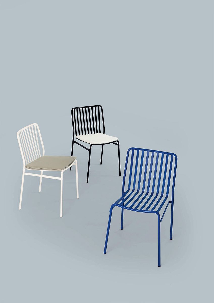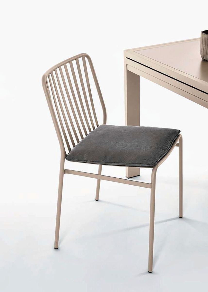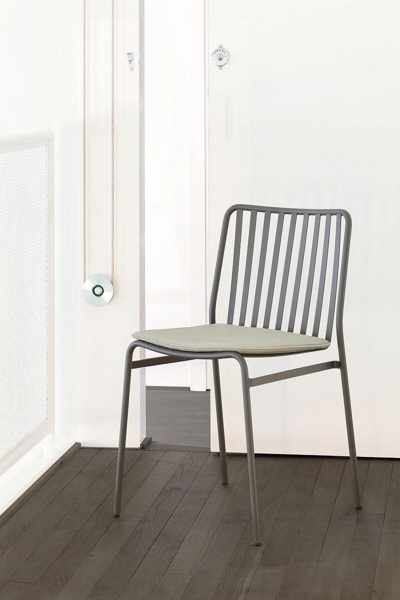 Штабелируемый стул с простым и современным дизайном. Полностью изготовленный из стали, он может быть дополнен удобными подушками из эко-кожи.