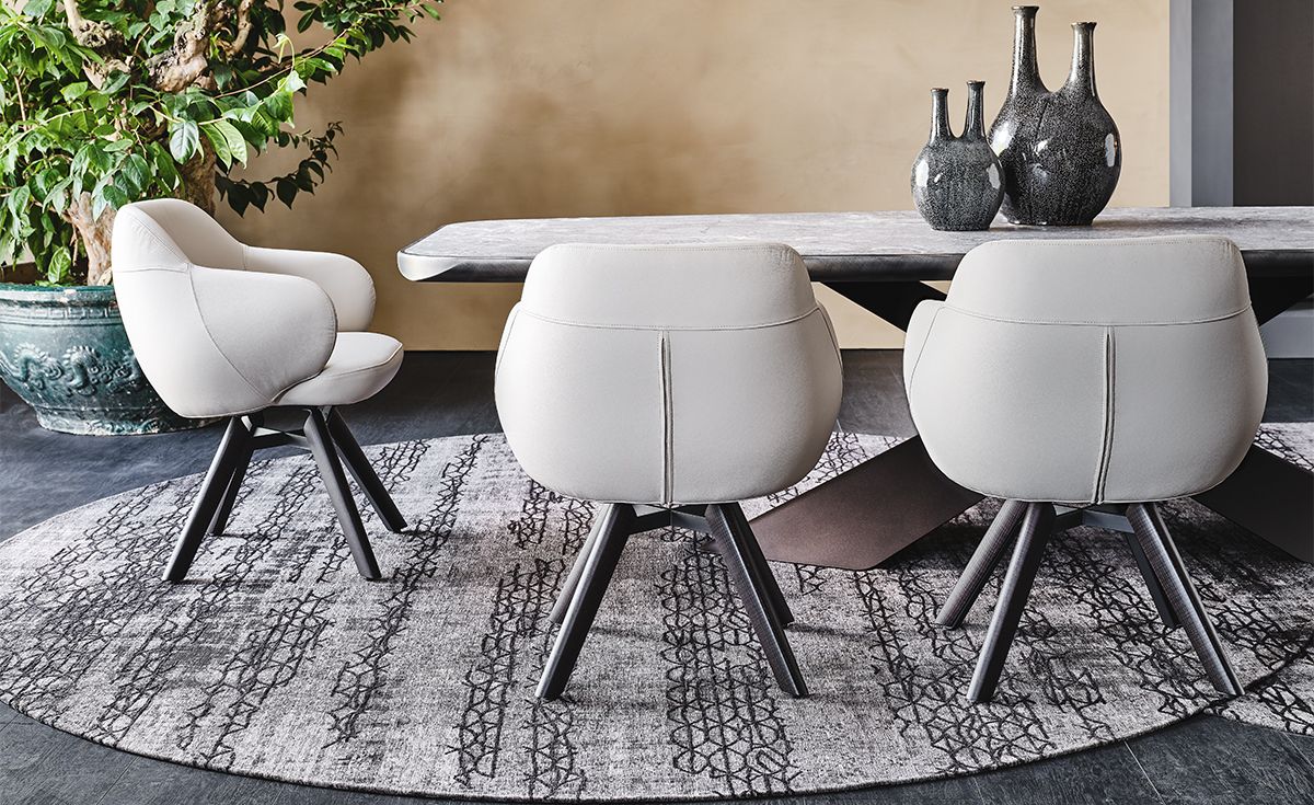 Линия вращающихся стульев с возвратным механизмом Bombè характеризуется обволакивающим и выпуклым сиденьем. Это кресло, которое претендует на свое пространство и свое значение, став главным героем гостиной. Bombè - это элегантное кресло с мягкой набивкой с удобным, прочным и функциональным сиденьем, доступное в широком ассортименте богатых обивок. В версии Bombè X идеально подходит в качестве удобного офисного стула, имеет 4-спицевую базу из окрашенной стали.