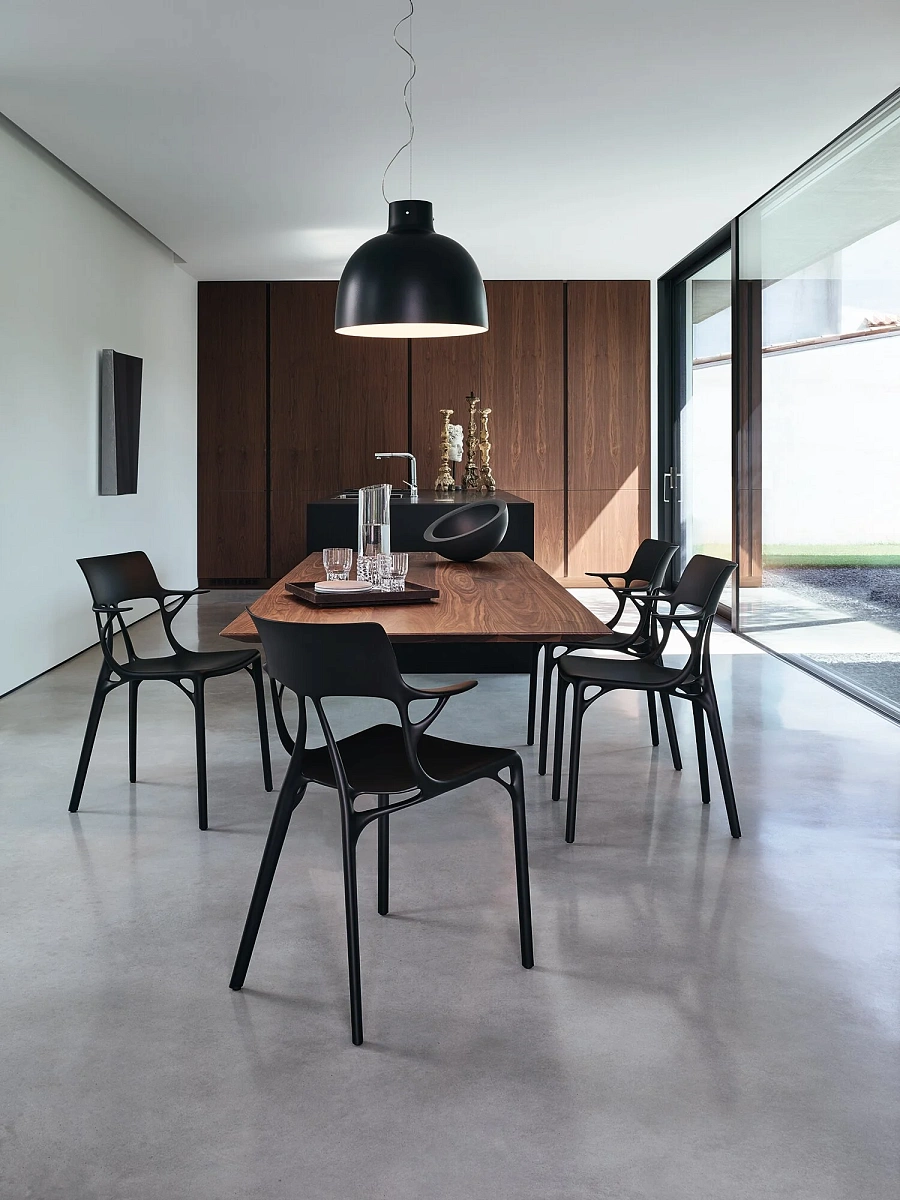 Kartell продолжает свою постоянную приверженность устойчивому развитию, предлагая экологически чистую продукцию, которая является частью более широкого проекта, выраженного в промышленном манифесте Kartell любит планету. A.I. это стул, впервые созданный с использованием переработанного материала, в котором эстетика и структурные требования остаются неизменными, органично сочетаясь с генеративным дизайном. Дополнительная ценность A.I. заключается в том, что это первое семейство продуктов, созданное искусственным интеллектом в ответ на вклад, полученный от дизайнера (Филипп Старк) и ноу-хау компании (Картелл). В частности, творческое мышление, ноу-хау компании и искусственный интеллект объединились для разработки модели стула, основанной на алгоритме, который учитывает исходное задание дизайнера, а компания представляет собой удобный продукт с необходимой структурной прочностью и надежностью, одновременно поддерживая одну из главных ценностей Kartell: быть литым промышленным продуктом выдающегося эстетического качества.
