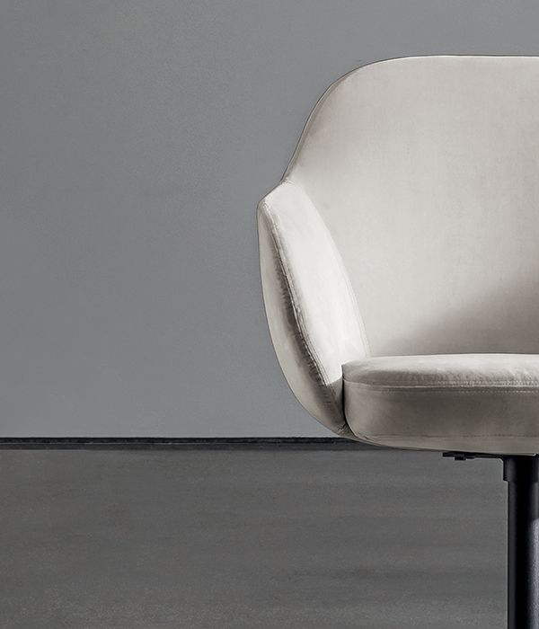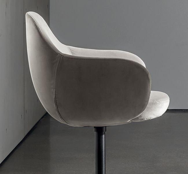 Стул/кресло с вращающимся основанием из лакированного металла, различные варианты отделки. Корпус обит различными материалами и с различными вариантами отделки.