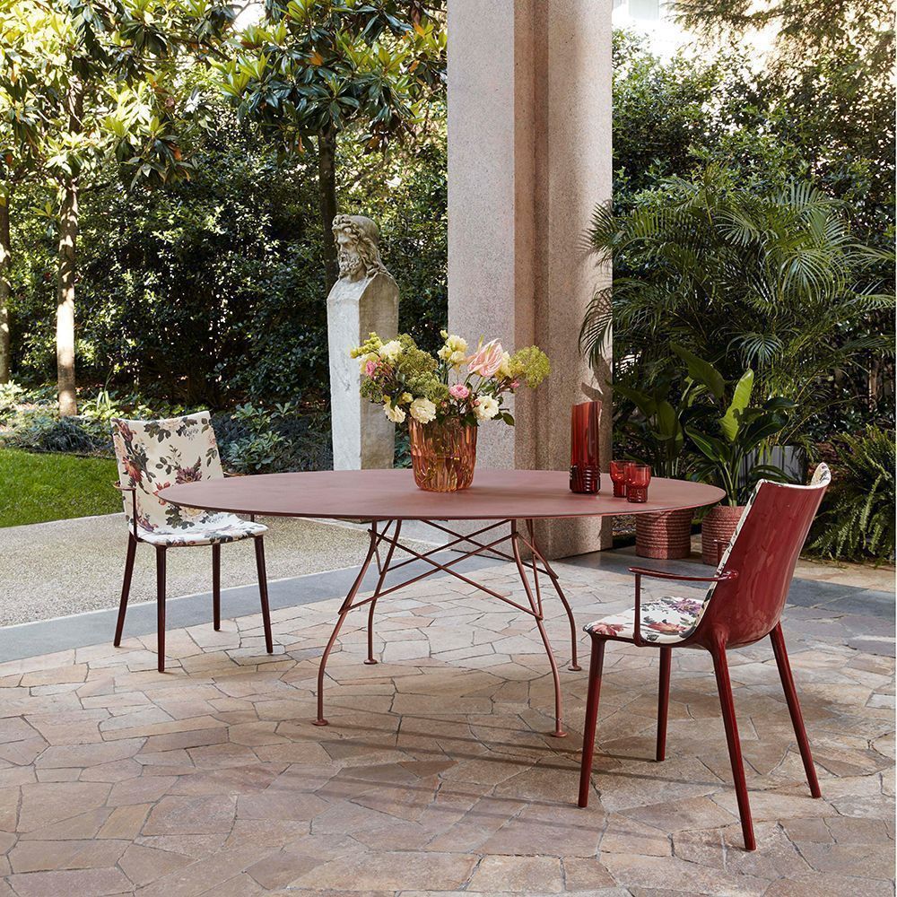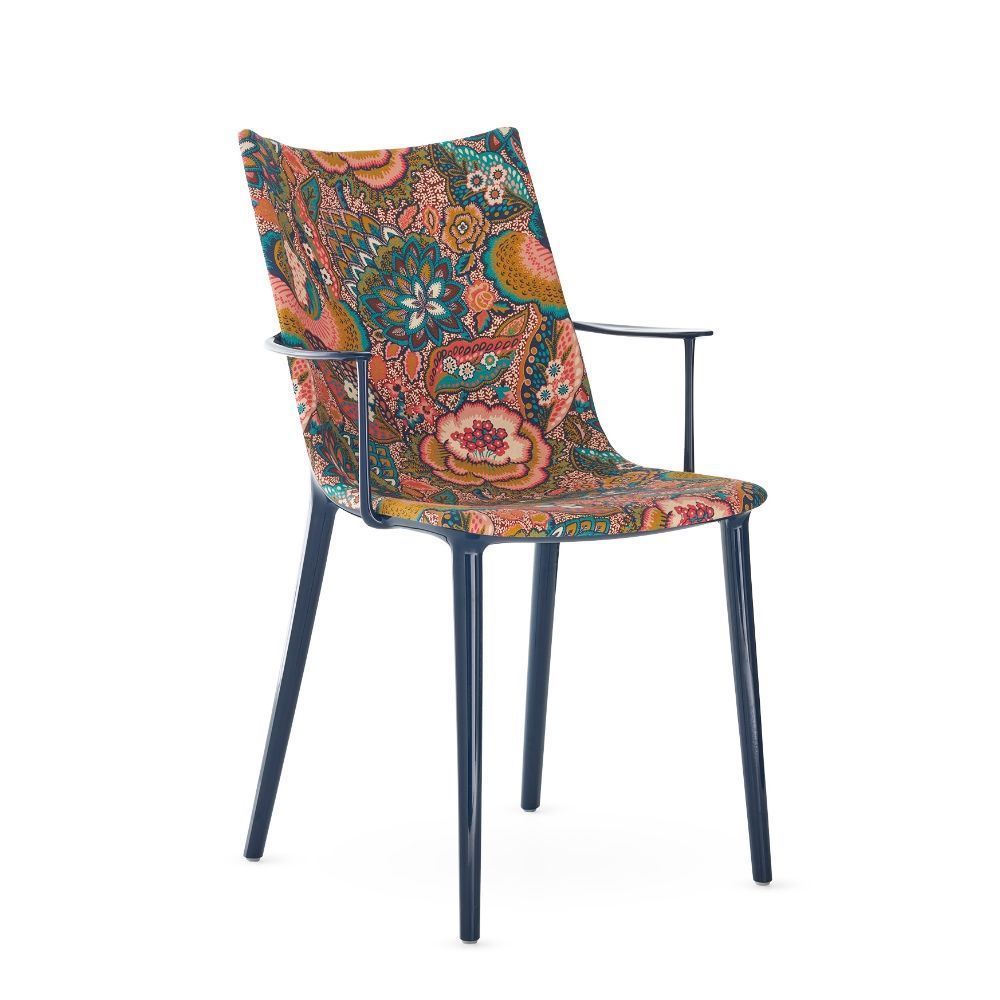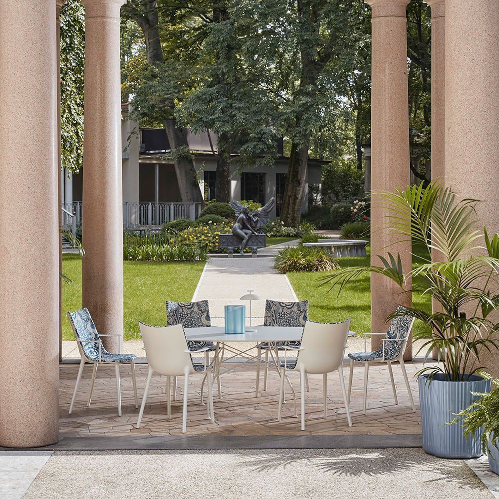 Филипп Старк возносит нас на новую высоту, представляя кресло HHH – HER HIGHEST HIGHNESS. Обладая непревзойденной элегантностью и графичным эффектом, кресло HHH выражает саму суть взаимодействия с ним человека, побуждая его занять определённую позицию. Оно выходит за рамки простого сидения, превращая каждое мгновение, проведённое в нём, в поистине величественное. Каркас изготовлен из переработанного материала, а сиденье доступно в различных вариантах отделки: переработанная кожа с зелёным дублением, чёрный и бежевый цвета, экологичная текстура, частично полученная из переработанных материалов и частично из возобновляемых источников, чёрный и табачный цвета, а также суперглянцевая отделка в белом, чёрном, бордовом, ржавом, горчичном, синем и зелёном цветах. Но HH выходит за рамки простых практических функций кресла, становясь символом стиля, очаровывающим и вдохновляющим каждого, кто к нему приближается, благодаря серии Kartell x Liberty, обитой шестью тканями Liberty с яркими цветочными принтами. Верный своей роли пионера в поиске новых и разнообразных технологических инноваций, Kartell решил сделать ещё один шаг в этом направлении, экспериментируя с новым высокотехнологичным промышленным процессом печати, называемым «графическим тиснением». Эта техника будет использована для создания четырёх цветочных и геометрических узоров в различных цветовых вариантах.