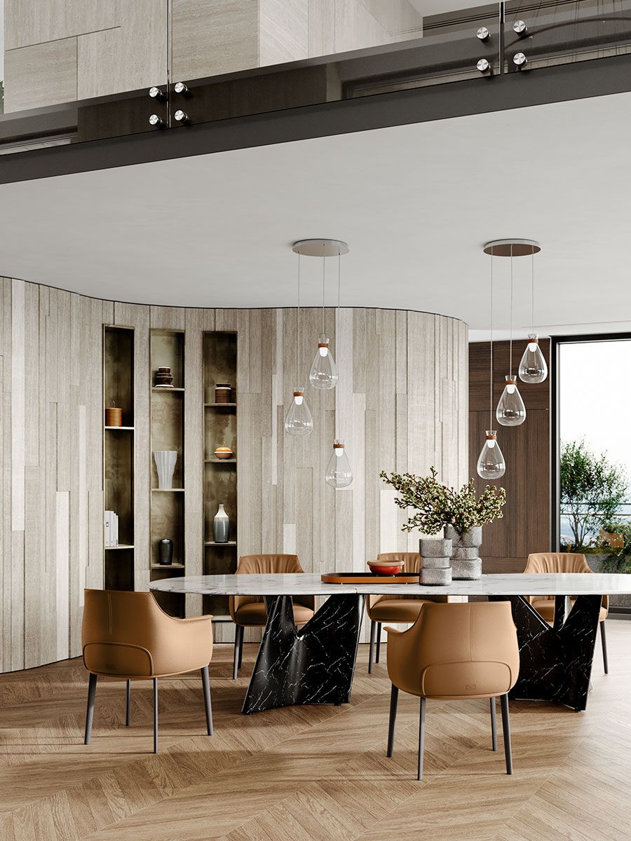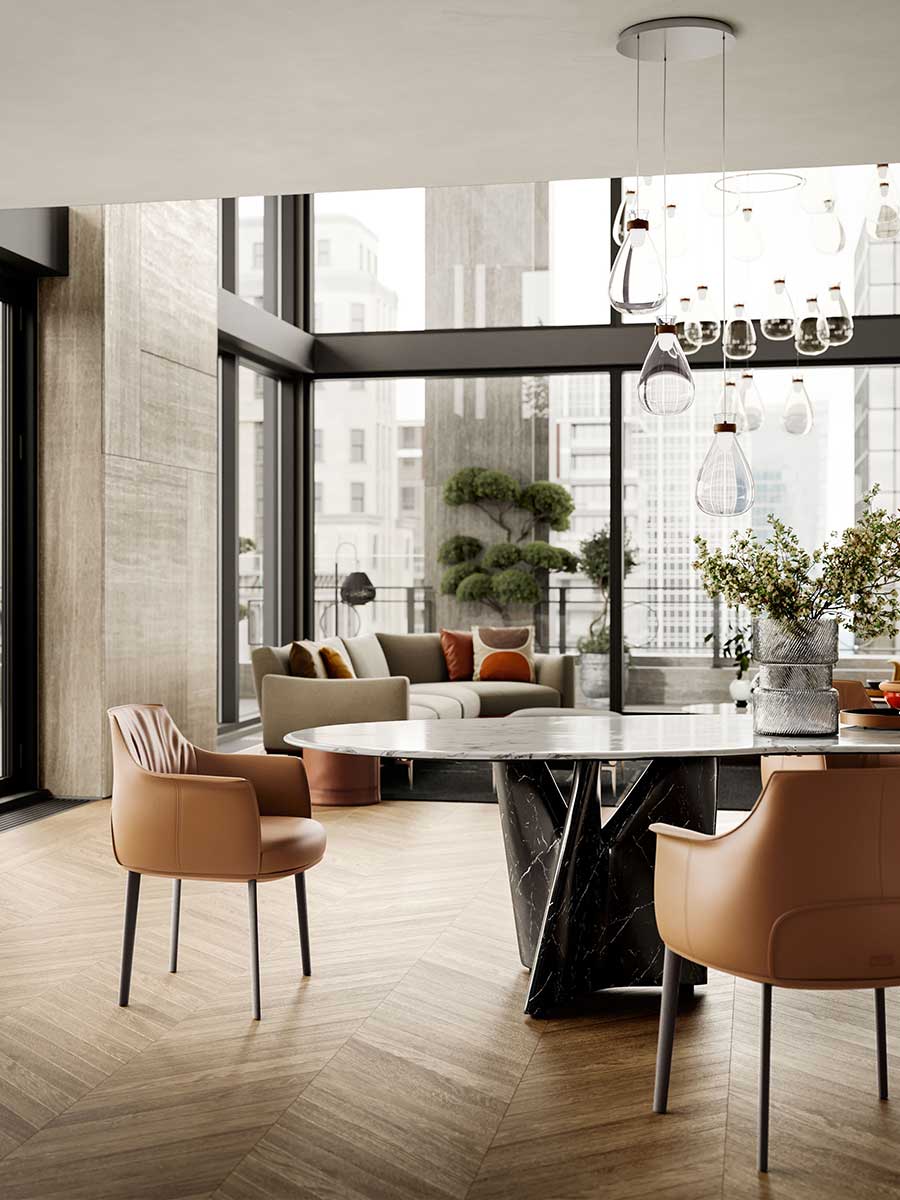 Большой обеденный стул Archibald отличается увеличенным сиденьем и более высокой спинкой. Каркас и подлокотники выполнены из формованного жёсткого полиуретана, наполнителя — мягкий формованный полиуретан и полиэстеровая вата. Обивка сиденья выполнена из берёзовой фанеры с наполнителем из пенополиуретана и ваты. Пружинная система — эластичные ремни. Обивка — кожа или ткань, кожаный вариант дополнен контрастной строчкой.