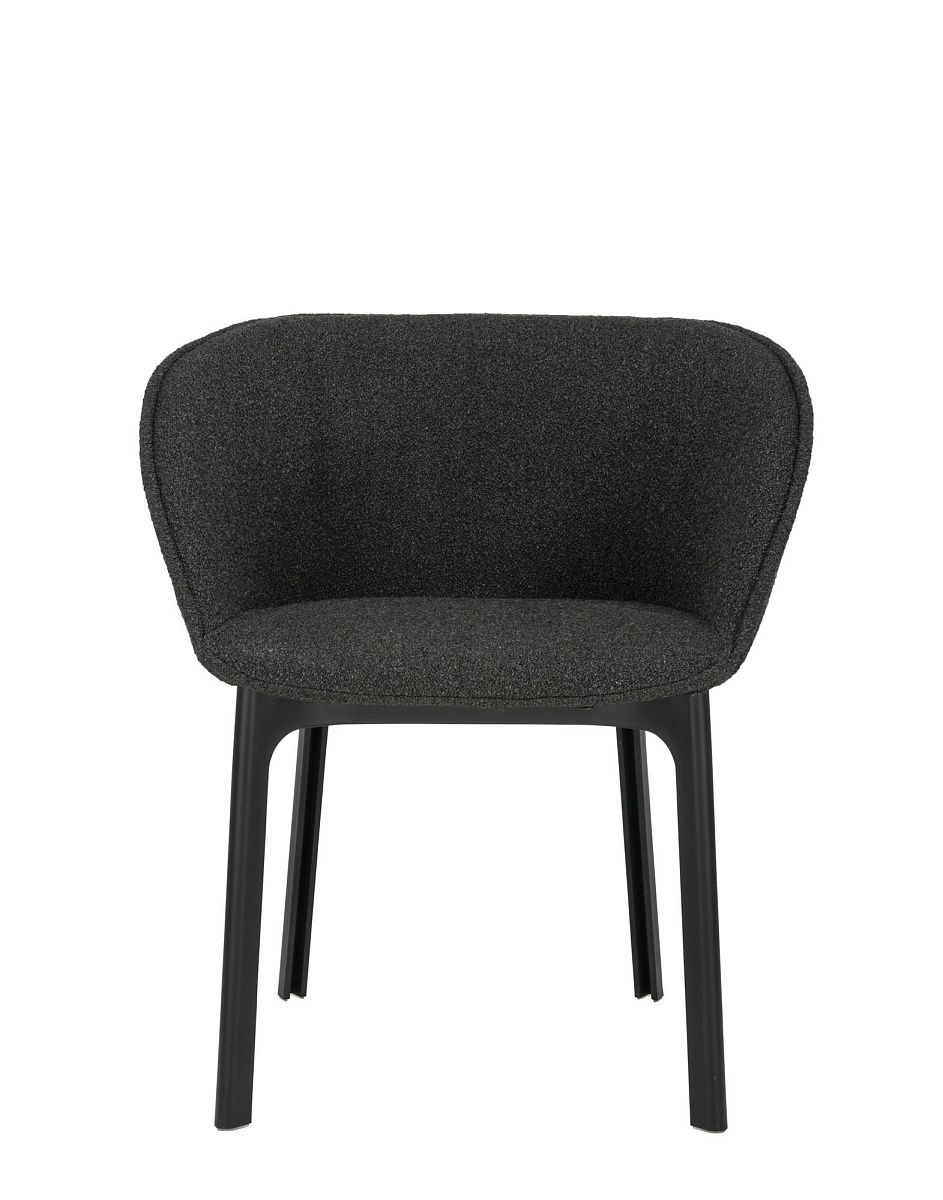 Обеденный стул CHARLA отличается элегантными, плавными линиями и обволакивает вас, словно обволакивая. Кресло обладает всем необходимым для офисного и потребительского сегментов и идеально подходит для короткого отдыха в холле отеля или ужина у телевизора в гостиной дома. Charla сочетает в себе элегантность и экологичность благодаря ножкам из переработанного пластика. Каркас доступен в черном цвете с обивкой из ткани букле или специальной меланжевой ткани для офисного сегмента.