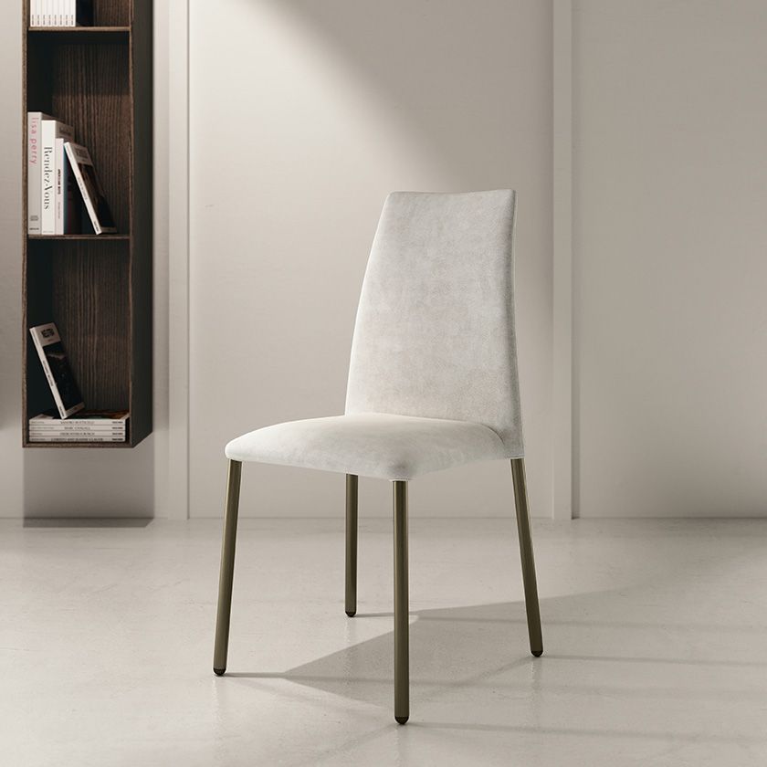Стул со структурой из стали седение в обивке из экологической кожи, ткани Bouquet, эконубука и ткани Penny.