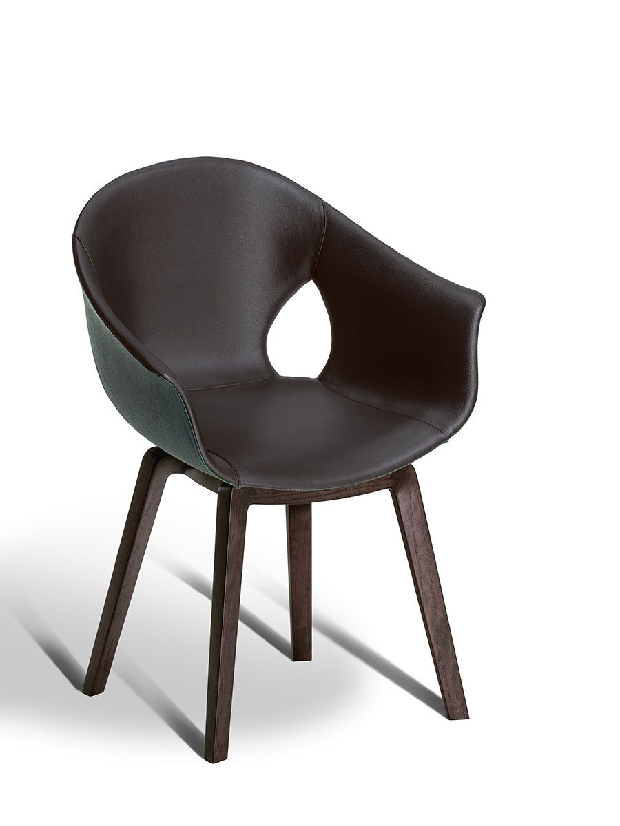 Стул Ginger с акцентом дополняет капсульную коллекцию Озвальда Боатенга. Внешняя обивка выполнена из кожи Pelle Frau® Kenté, внутренняя — из кожи Pelle Frau® Colorsphere. Основание из массива ясеня, доступно как в фиксированном, так и в поворотном исполнении.