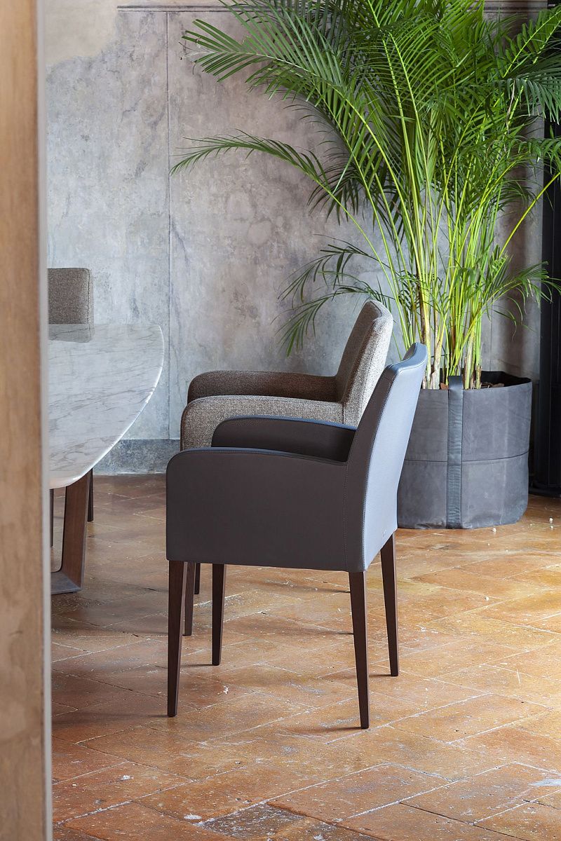 Каркас стула и стула Liz выполнен из массива ясеня. Ножки из ясеня, доступны в цветах мокко или венге. Специальные варианты отделки также возможны по запросу. Вогнутое сиденье и формованная спинка, как и подлокотники, заполнены пенополиуретаном. Обивка выполнена из кожи Pelle Frau® или ткани Poltrona Frau.
