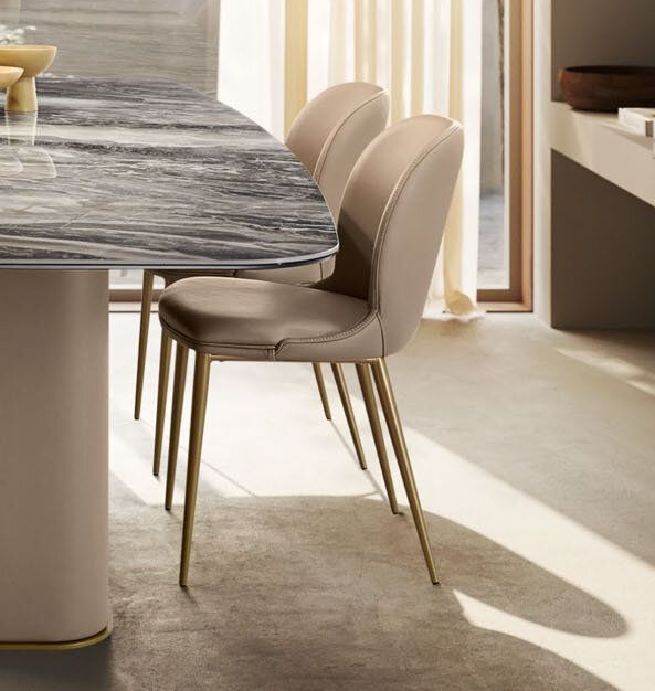 Оснащенные удобной закругленной спинкой кожаные обеденные стулья Medea характеризуются современным дизайном, позволяющим использовать их в самых различных помещениях и ситуациях. Конструкция с использованием эластичных ремней делает их чрезвычайно комфортными; выполненные из окрашенного металла ножки отличаются стройностью и элегантностью и доступны в различных вариантах отделки, включая кожаную обивку. Благодаря этому стулья очень удобны в обращении и пригодны для использования в любых типах интерьеров, как жилых, так и общественных.
