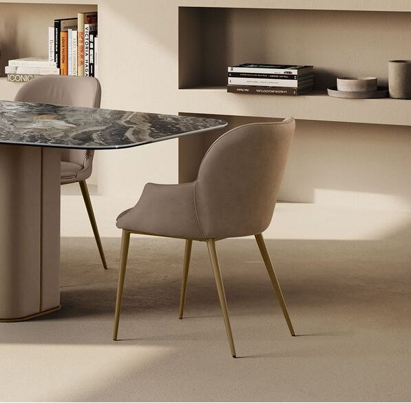 Оснащенные удобной закругленной спинкой кожаные обеденные стулья Medea характеризуются современным дизайном, позволяющим использовать их в самых различных помещениях и ситуациях. Конструкция с использованием эластичных ремней делает их чрезвычайно комфортными; выполненные из окрашенного металла ножки отличаются стройностью и элегантностью и доступны в различных вариантах отделки, включая кожаную обивку. Благодаря этому стулья очень удобны в обращении и пригодны для использования в любых типах интерьеров, как жилых, так и общественных.