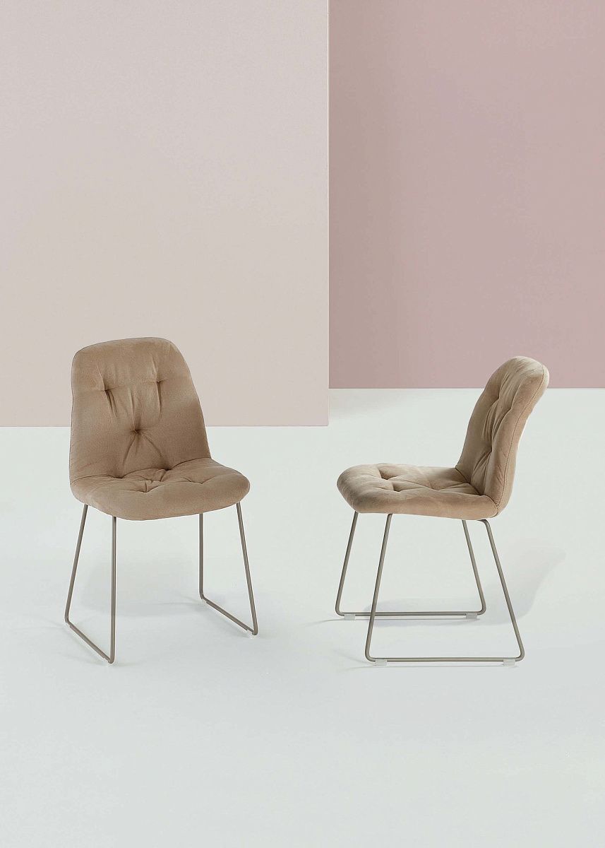 Стул со структурой из лакированной стали, сидение в обивке из экологической кожи, эконубука и ткани Penny.
