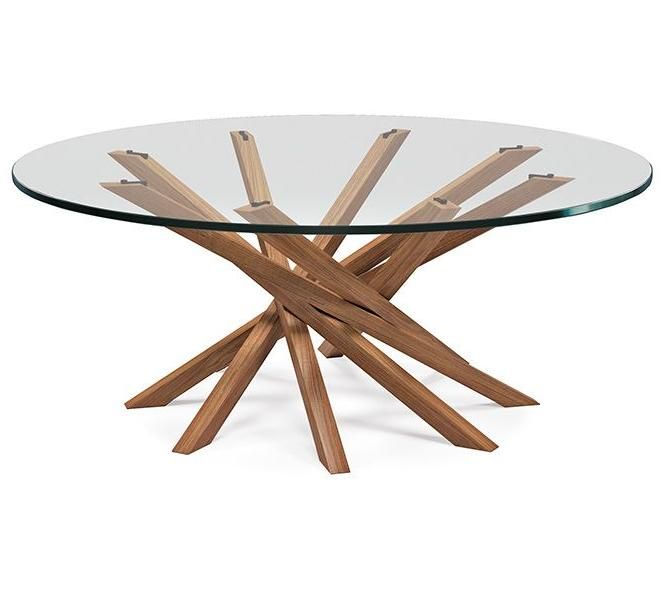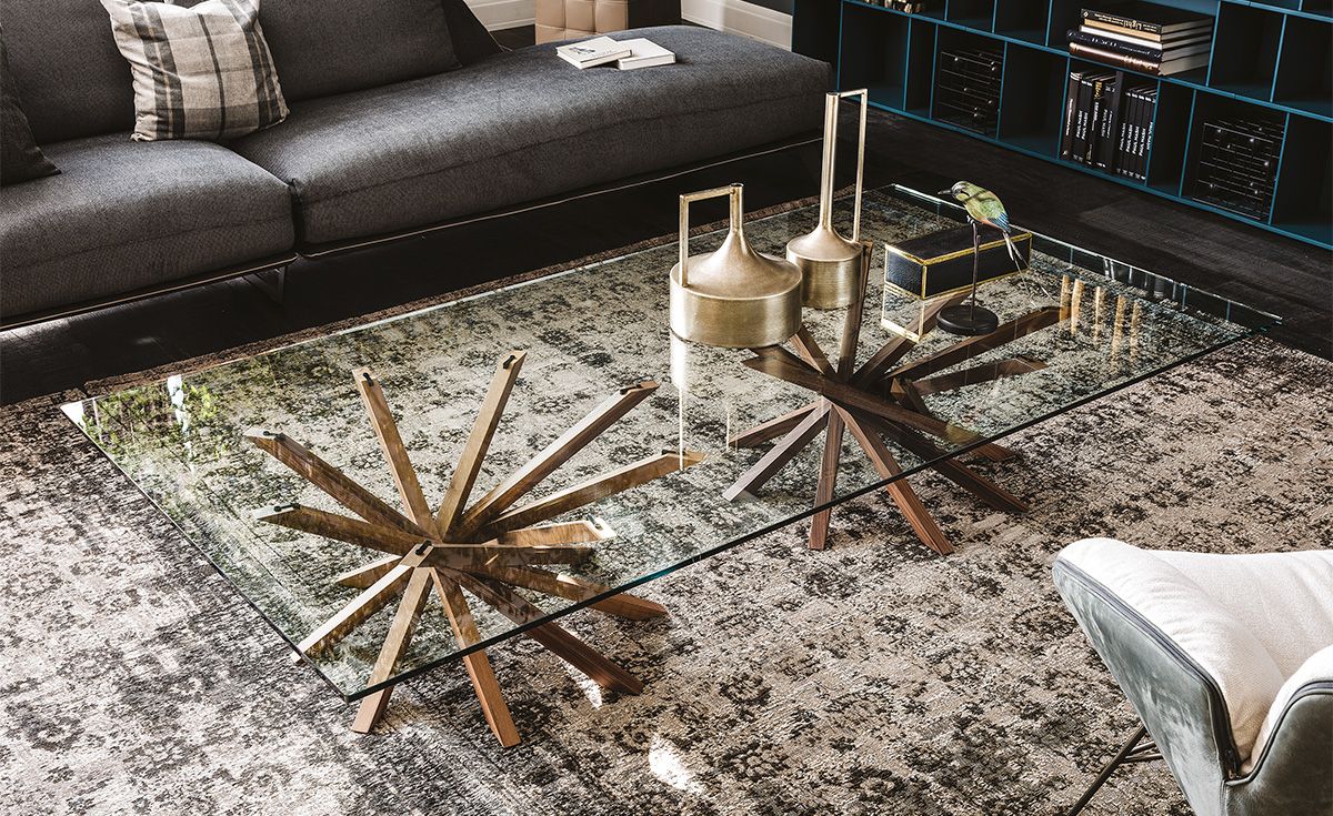 Atari, designed by Giorgio Cattelan, is a glass coffee table for the living room with a base formed by a spiral of balanced wooden elements, on which a splendid glass top rests. The 8 legs of this square or round modern coffee table are made of fine wood and appear to simply lean against each other, like a Mikado. In addition to being original, the composition is made prestigious by the excellent manufacturing and the attention to detail. The transparent glass top allows you to fully appreciate the beauty of the base. In the larger version, the base is duplicated, as is the charm of the rectangular glass table as a whole.