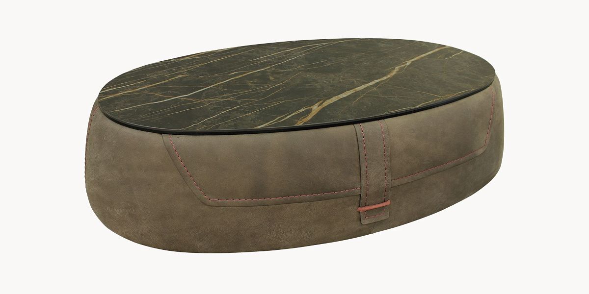 Символичной визитной карточкой этой коллекции служит характерная деталь в виде кожаной пряжки. Вдохновившись культовой сумкой, мы задумали и создали этот модный элемент, отдав ему главную роль в дизайне. Каждый компонент этого оригинального кожаного столика может быть персонализирован, позволяя покупателям сделать свой выбор из обширной подборки нашей кожи и воспользоваться множеством вариантов отделки, предлагаемых для столешниц.