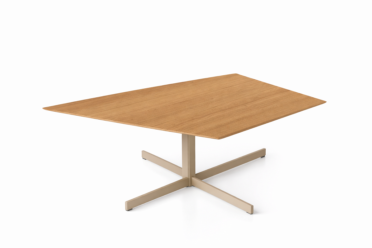 Bento — это не просто журнальный столик, а целая система. Три элемента, которые можно использовать по отдельности или комбинировать в гармоничные композиции. Три трапециевидные формы, разные, но согласованные, естественно сочетаются между собой. Настоящее внимание привлекает поверхность: каждый столик доступен в различных отделках, которые при совмещении создают визуальную текстуру, пересекающую линии и усиливающую композиционный эффект. Это изысканная игра контрастов и гармонии, где материал становится графикой.