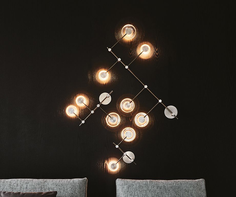 CIRCUIT - оригинальный светильник, воплощение точных геометрических форм. Модель доступна в версии подвесного потолочного светильника и настенного - бра. Плафоны светильника представлены в двух размерах и отделках, они изготавливаются из стекла и закрепляются на стальной конструкции. Дизайн модели разработан: STC Studio. Фабрика: Cattelan Italia. Страна производства: Италия.