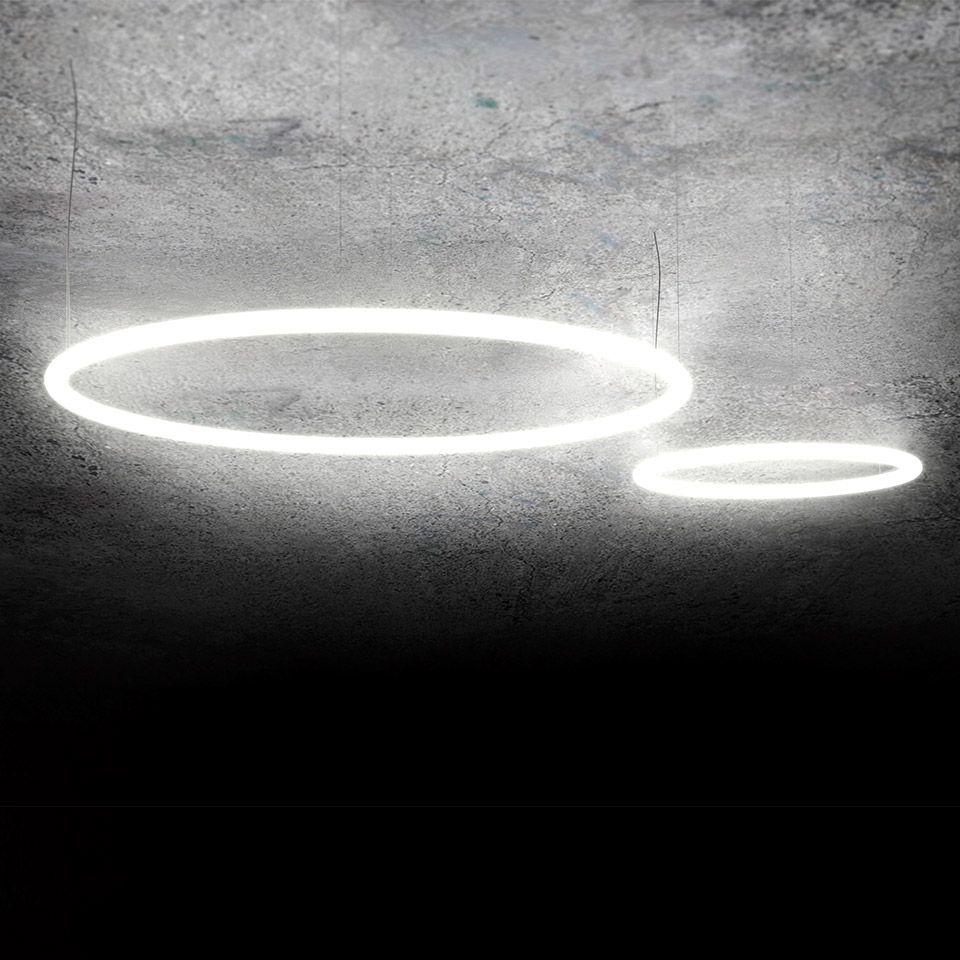 Светодиодный подвесной светильник Artemide Alphabet of Light Circular Suspension из алюминия и метакрилата с кольцевым рассеивателем. Рассеянное освещение. С регулируемой яркостью или с помощью приложения Artemide.
