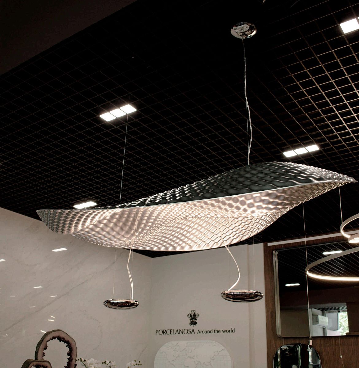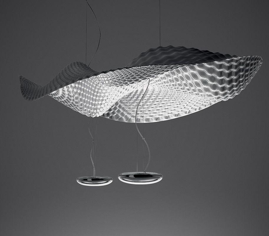 Подвесной светильник Artemide Cosmic Angel Suspension с плафоном из АБС-пластика и двумя светильниками из литого алюминия. Непрямое освещение. Для ламп R7s. Фазовое регулирование яркости.