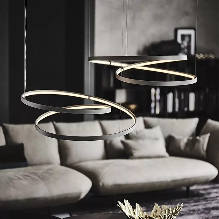 Дизайнерский светильник Heaven работы Джорджио Каттелана, представляет собой декоративный элемент, создающий в современной гостиной уникальный и оригинальный стиль. Выполнен в форме закрытой спирали, изготовленной из стали, которая удерживает внутри светодиодную лампу с дистанционным управлением и регулятором интенсивности.Элегантная красота этой современной потолочной люстры идеально подходит к различным стилям мебели, от современной гостиной до классики, от минимализма до более изысканного дизайна.