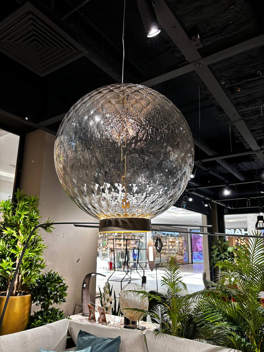 Лампа из дутого стекла Ohay сделана с применением древнего метода Balloton, типичного для ремесленных традиций мастеров-стекольщиков из Мурано.Сфера лампы balloton Ohay характеризуется трехмерным поперечным ромбовидным рисунком, полученным из металлической формы. Наконечники, содержащиеся внутри формы, в результате выдувания формируют расплавленное стекло и реализуют типичный граненый эффект обработки balloton.Оптический эффект - впечатляет, еще больше подчеркнутый оттенками дымчатого кристалла. Свет отражается между регулярными вкраплениями и возвращает мягкий и нежный эффект.Край абажура обернут металлическим кольцом, которое, кажется, хочет крепко удерживать воздушный шар, готовый к полету. В этом и заключается величие ручной обработки стекла, способного сделать его легким и придать холодному и жесткому материалу душу.