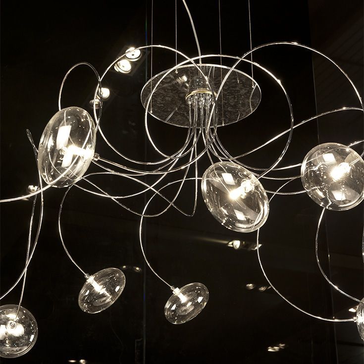 Современная люстра Oktopus - это спектакль из стеклянных абажуров, которые, кажется, оживают на концах металлических щупалец, волнообразно парящих в воздухе.Дизайнерская люстра Oktopus - это трехмерная хореография, богатая деталями, которая равномерно освещает комнату, обогащая окружающее пространство оригинальным и неподвластным времени дизайном.