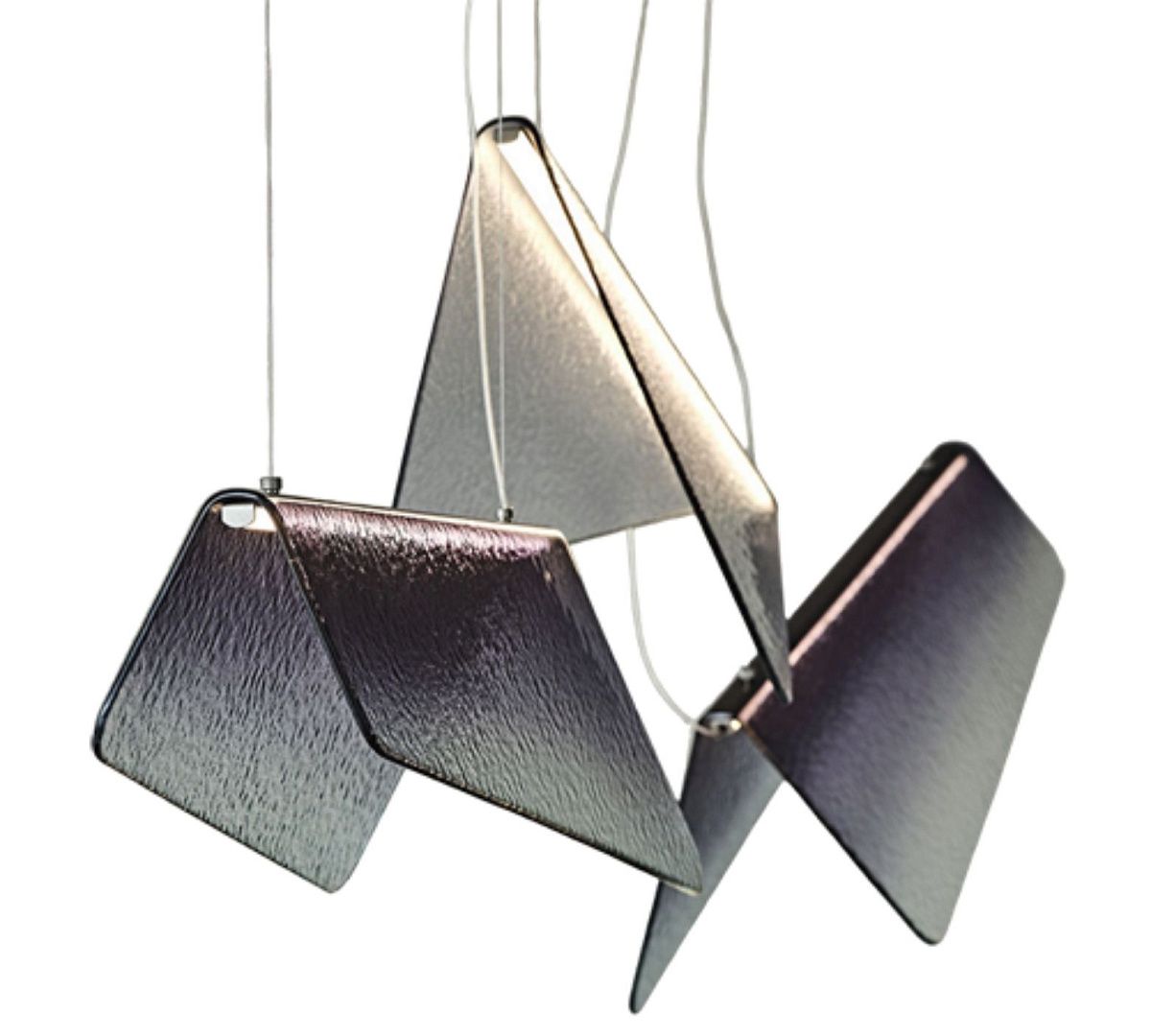 Модель Velar является дизайнерским подвесным светильником который, кажется, хочет взмахнуть крыльями и взлететь. С мастерством, которое отдает дань итальянским производственным традициям, эта современная стеклянная лампа создается путем сгибания стеклянной пластины, формируя таким образом два асимметричных наконечника из изученной геометрии. Velar отличается простым дизайном, украшенным тщательно подобранными деталями, такими как шероховатая поверхность стекла и более интенсивная дымчатая окраска по направлению к центру. Светодиодная лампа расположена вдоль центральной складки и излучает элегантный свет, подчеркивая оттенок стекла. Этот деликатный дизайнерский подвесной светильник находит свое максимальное выражение, если соединяются две или более модели с разной высотой или направлением, создавая композицию. В зависимости от естественного освещения комнаты Velar окрашивается в разные оттенки, от серого до синего.
