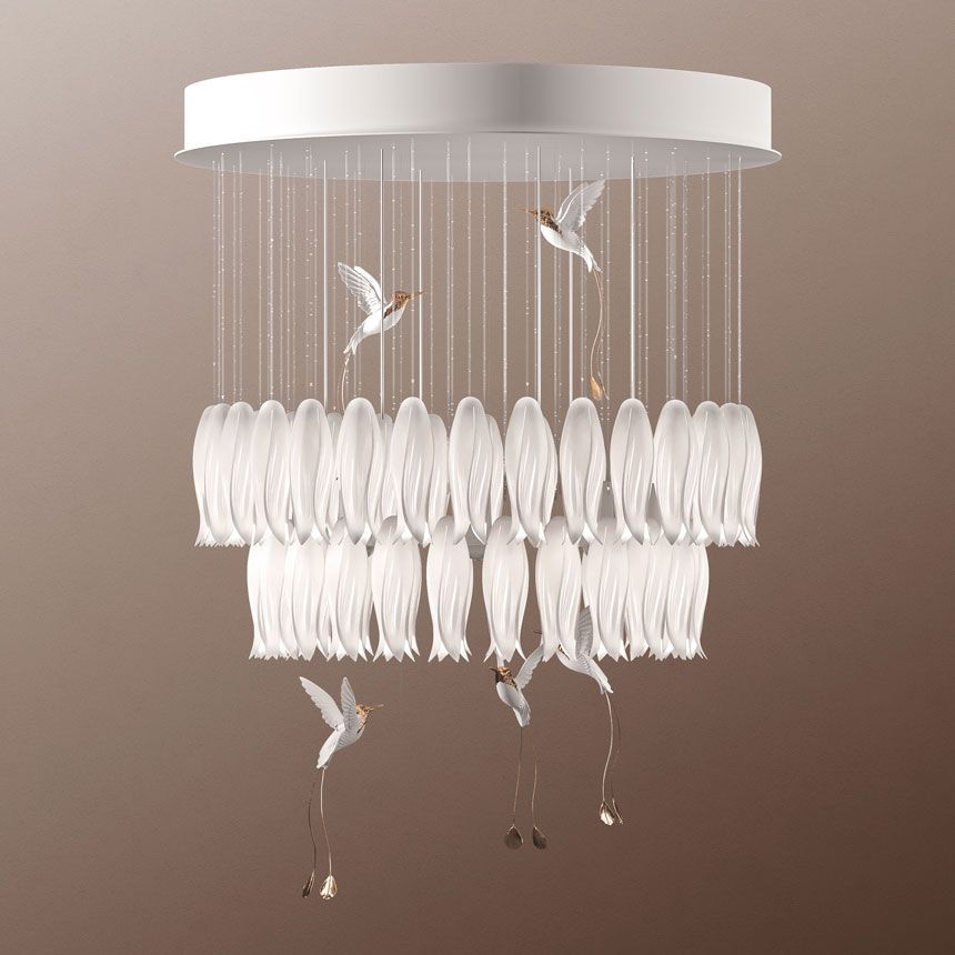 Эта люстра принесет в ваш дом особую энергетику, наполнит его светом и гармонией. Alba воплощает поэзию цветения и полёта: фарфоровые бутоны и птички колибри собраны в симметричную композицию. Подходит для классических и ар-деко интерьеров, где важны мягкость формы и тепло света.