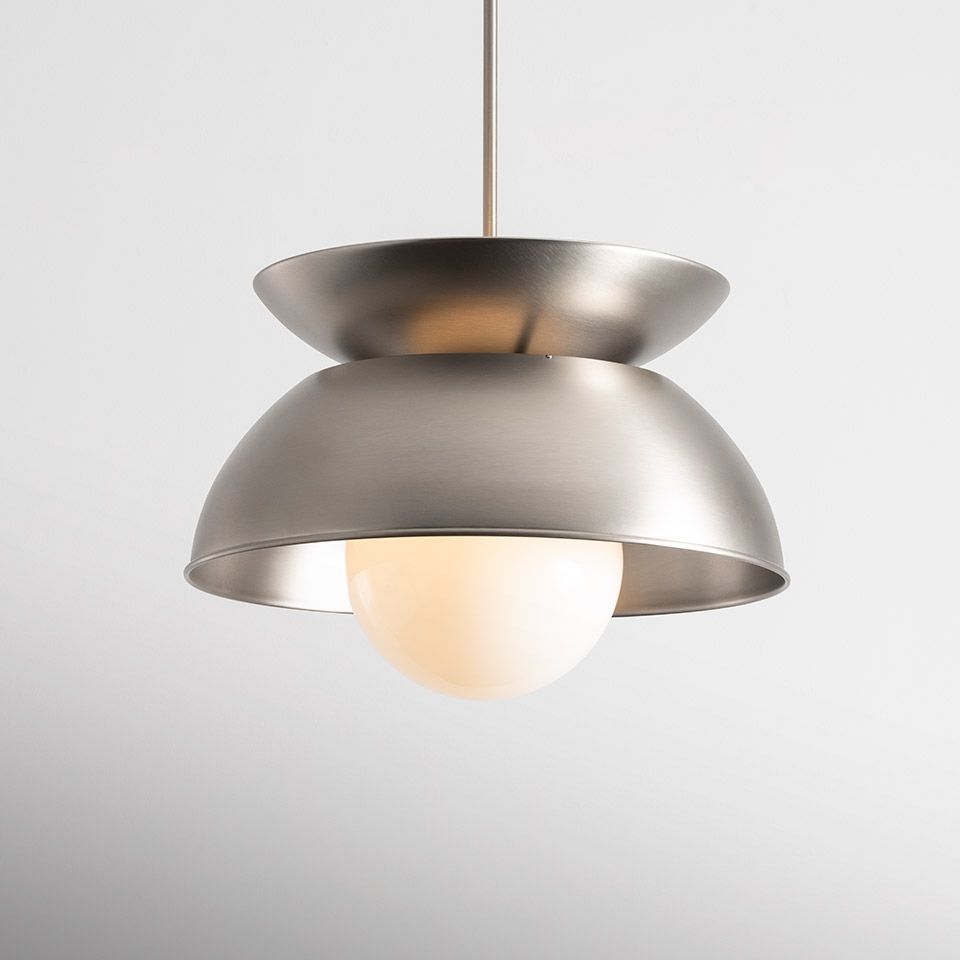 Маджистретти спроектировал этот светильник, используя в качестве рассеивателя секцию сферы, увенчанную вторым геометрическим элементом той же формы, установленным в перевернутом виде, вогнутой частью к потолку. Cetra — это скульптурный подвесной светильник, сочетающий в себе чистые формы, взаимодействующие со светом через различные материалы, рассеивающие, экранирующие или отражающие его. Две металлические полусферы могут быть покрыты белым лаком или никелированы. Верхняя половина скрывает рассеянный свет, а нижняя часть содержит опаловый стеклянный шар, мягко рассеивающий свет по всему пространству.