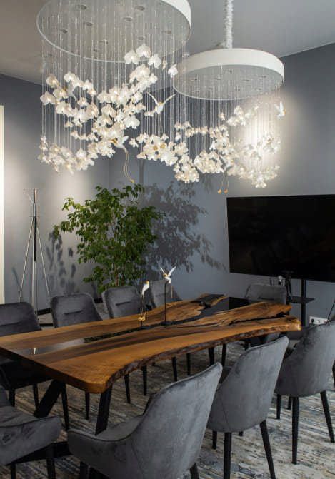 создает правильная организация пространства. Интерьер должен быть не просто освещенным, в нем должен быть смысловой центр. Люстра Ellea – арт-объект в центре вашего интерьера, создающий атмосферу и смысл. Подвесы коллекции Ellea расположены на оптоволокне и имеют форму цветов с кристаллами Swarovski в основании.