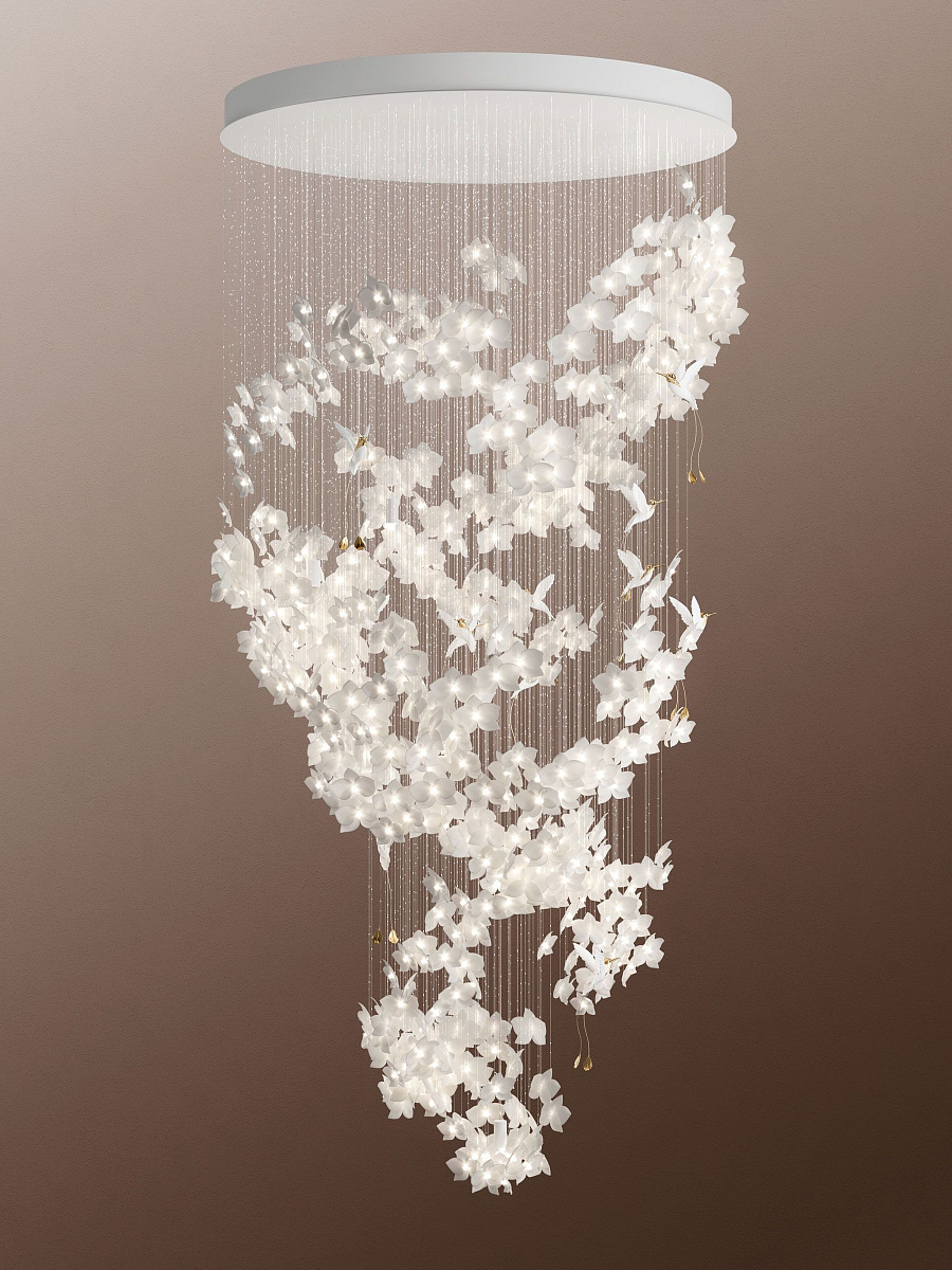 Прекрасные фарфоровые цветы украсят Ваш дом и создадут в нем особый, «природный» уют. Подвесы коллекции Ellea расположены на оптоволокне и имеют форму цветов с кристаллами Swarovski в основании. Они выполнены из скульптурного фарфора, который славится красивым мраморным цветом, особой прозрачностью, белизной и блеском. Добавьте пространству атмосферу и смысловой центр. Люстра Sagarti – арт-объект в центре вашего интерьера.