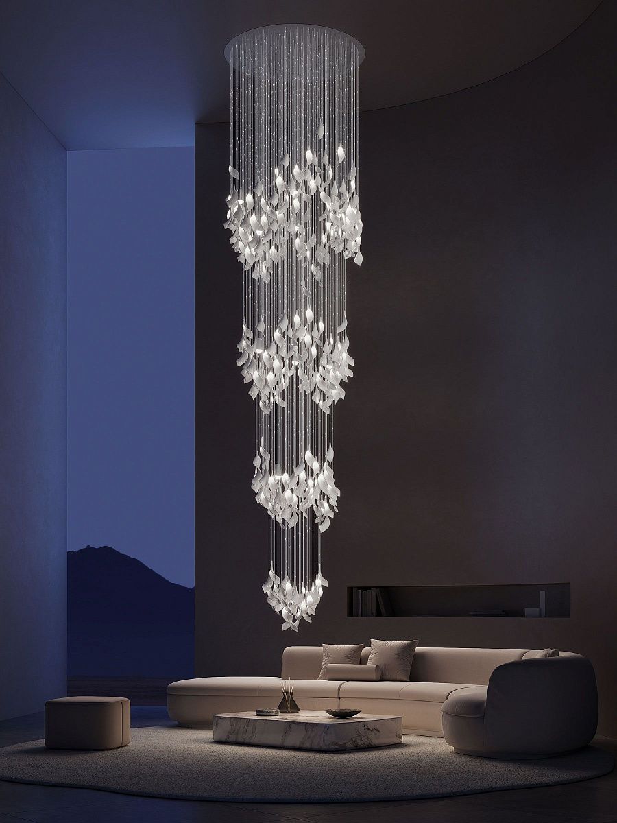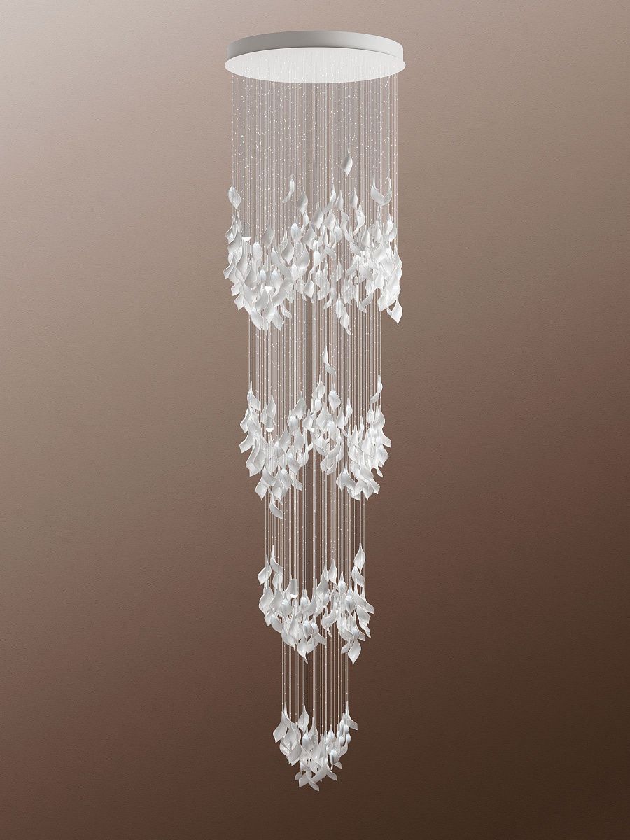 В коллекции Espira фарфоровые подвесы выполнены в виде листьев, словно застывших в момент дыхания природы. Дизайн люстры гармонично дополнит интерьер. Станет удачным решением гостиничной зоны.