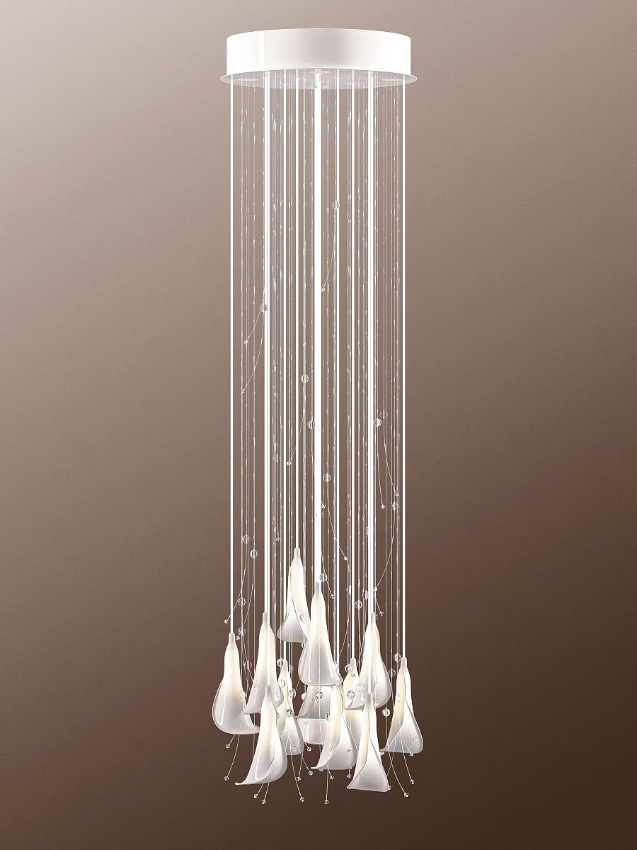 Глянцевые подвесы коллекции Flora изготовлены из костяного фарфора в виде цветов каллы. Коллекция "Flora" вдохновлена формой каллы — крупный фарфоровый бутон светится изнутри благодаря оптоволокну. Неповторимый образ к которому хочется прикоснуться, почувствовать прохладную гладкую поверхность и заглянуть внутрь. Стеклянные капли создают эффект воды, а вертикальные линии идеально подходят для высоких потолков. Люстра Sagarti – арт-объект в центре вашего интерьера.
